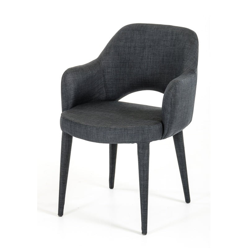 Provide yourself with something both beautiful and superbly practical with this dining chair. This dining chair is an expertly made piece with dark grey fabric upholstery and metal legs. It's certainly both sturdy and durable. As for measurements, they are 34 for height, 22 for width, and 25 for depth, and it weighs 23.5 pounds. This dining chair can be a great addition to your home and will improve its ambiance immensely. If you want a functional, gorgeous, and durable dining chair, this is the one for you.