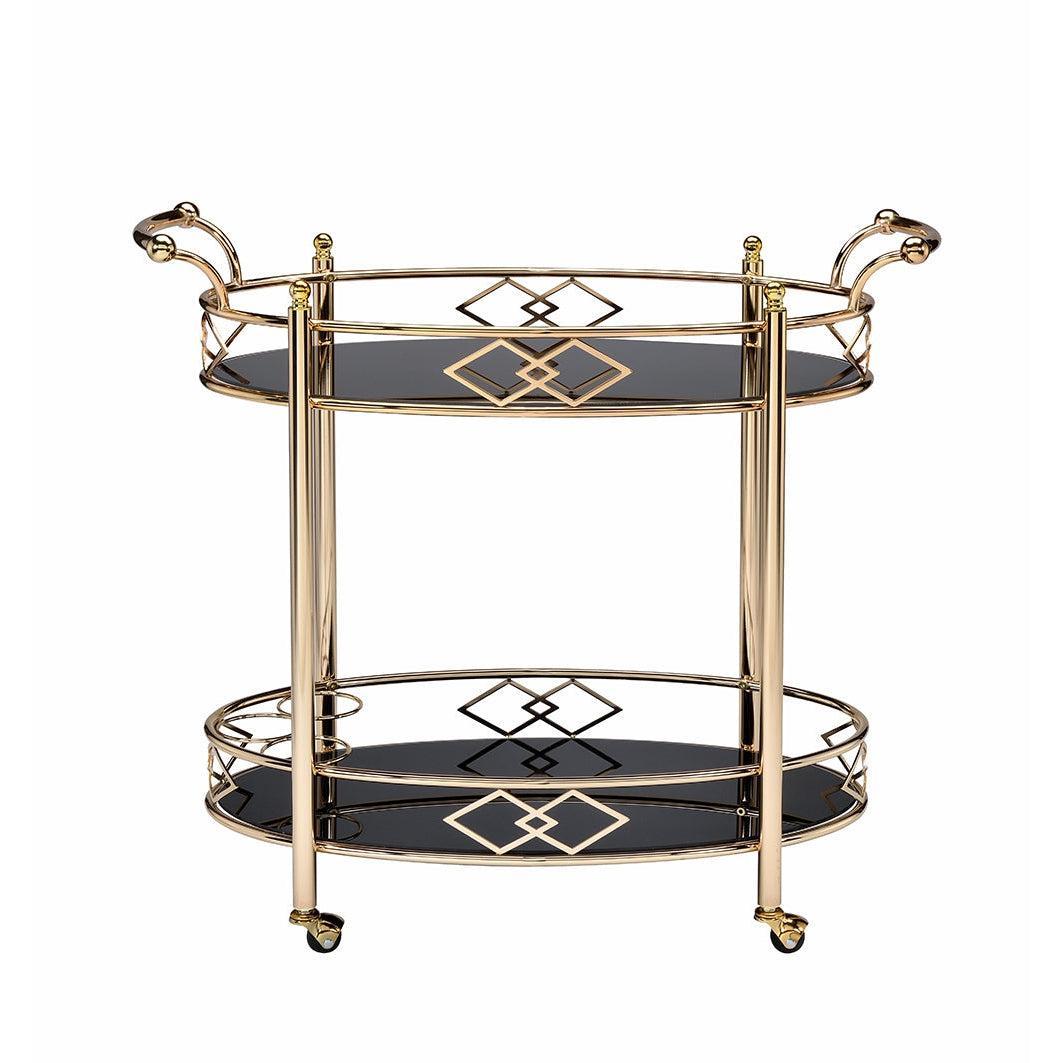 HomeRoots 35" x 16" x 32" Metal Serving Cart In Gold Finish