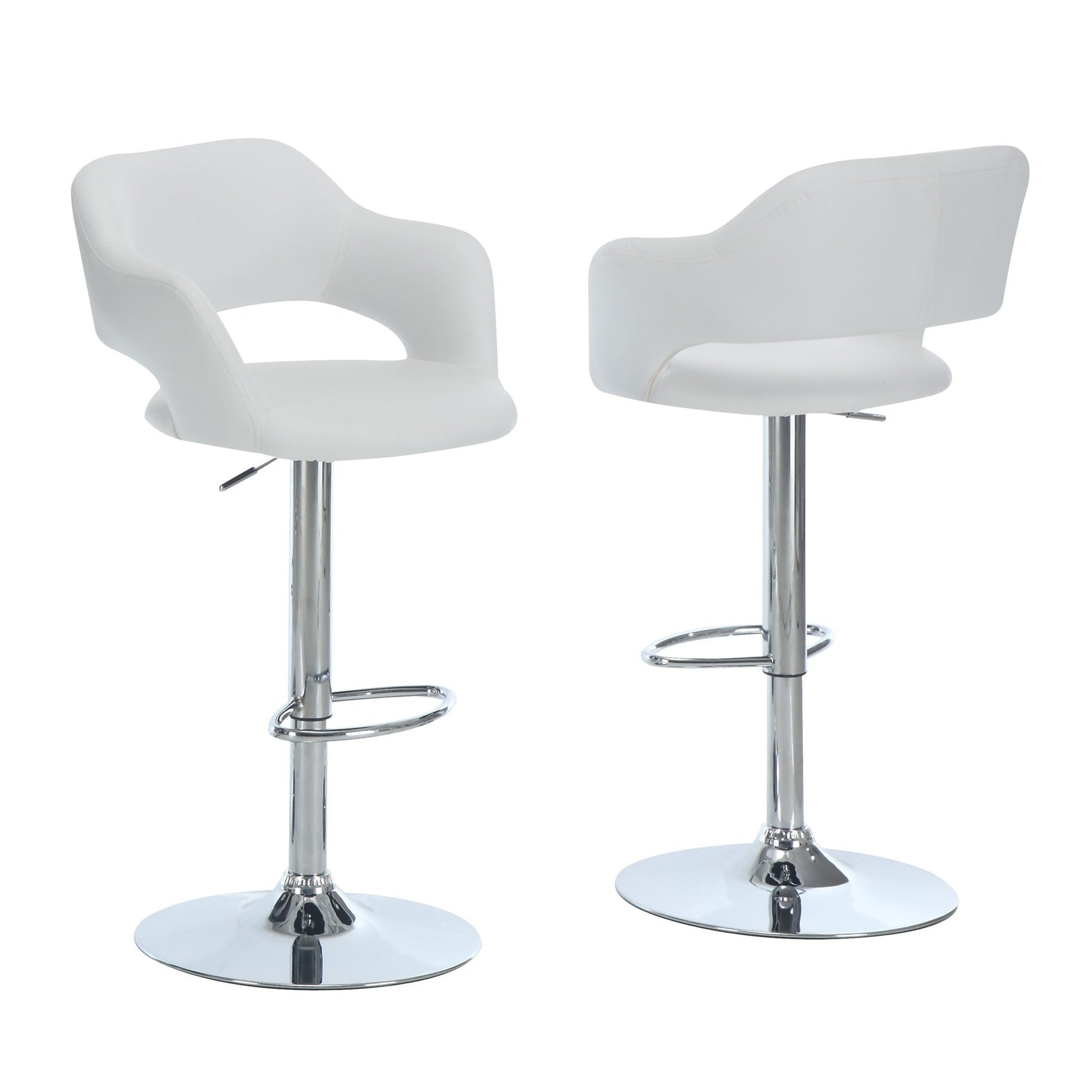 Comfortable enough to sit in for awhile, this 36" white and silver metal low back bar height bar chair with footrest will transcend the look of your room. Quality construction from silver metal combines with white upholstered to give this stool a fresh and updated look. A low back mixed with a round shaped seat design makes this chair both comfortable and fashionable. Designed with armrests for your comfort, this chair also features a footrest for comfort and convenience. 36" H x 21" W x 22.5" D
