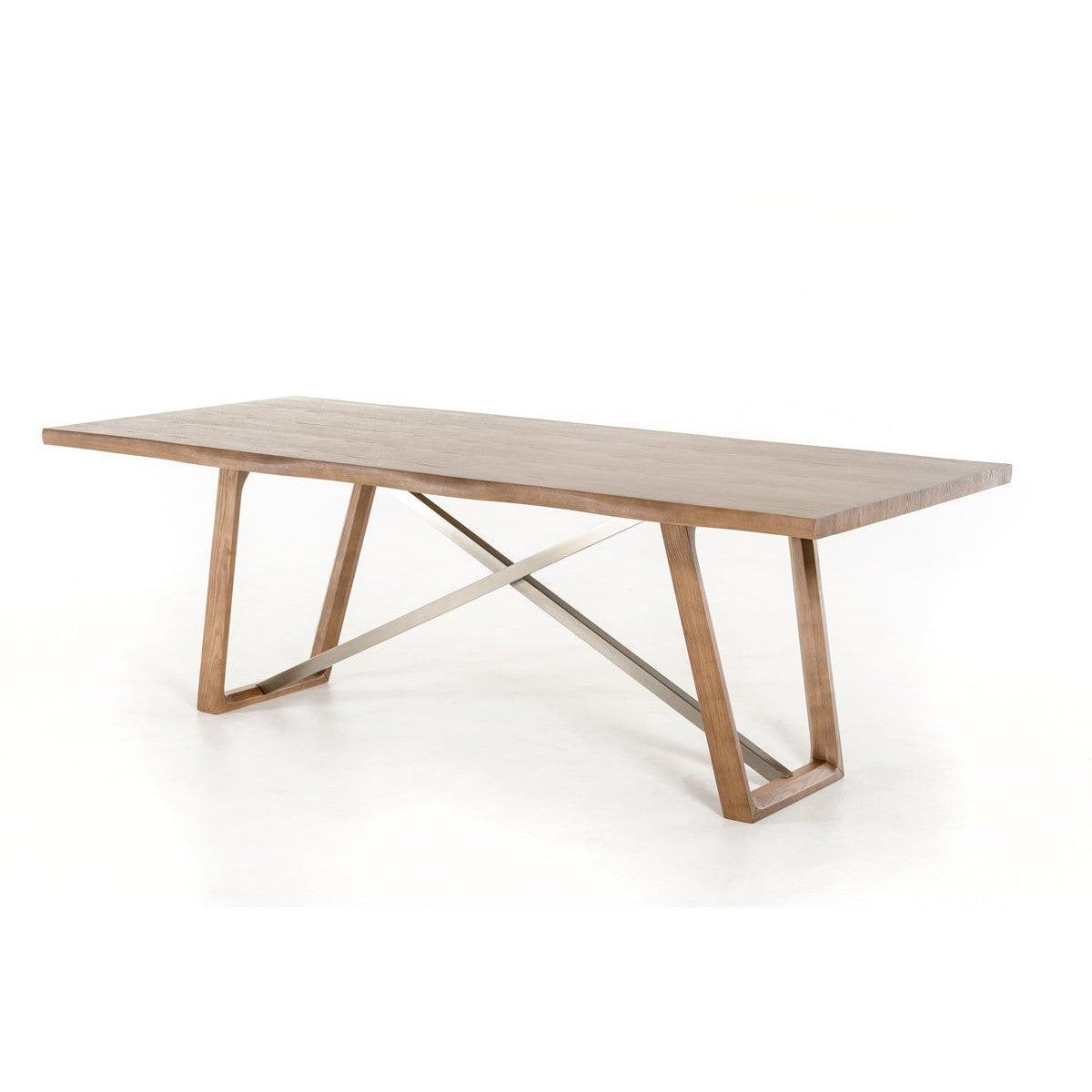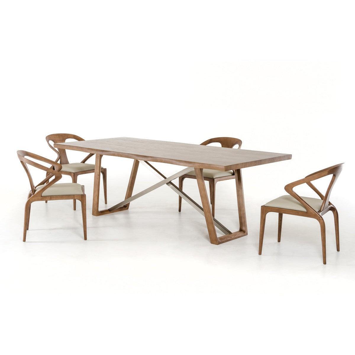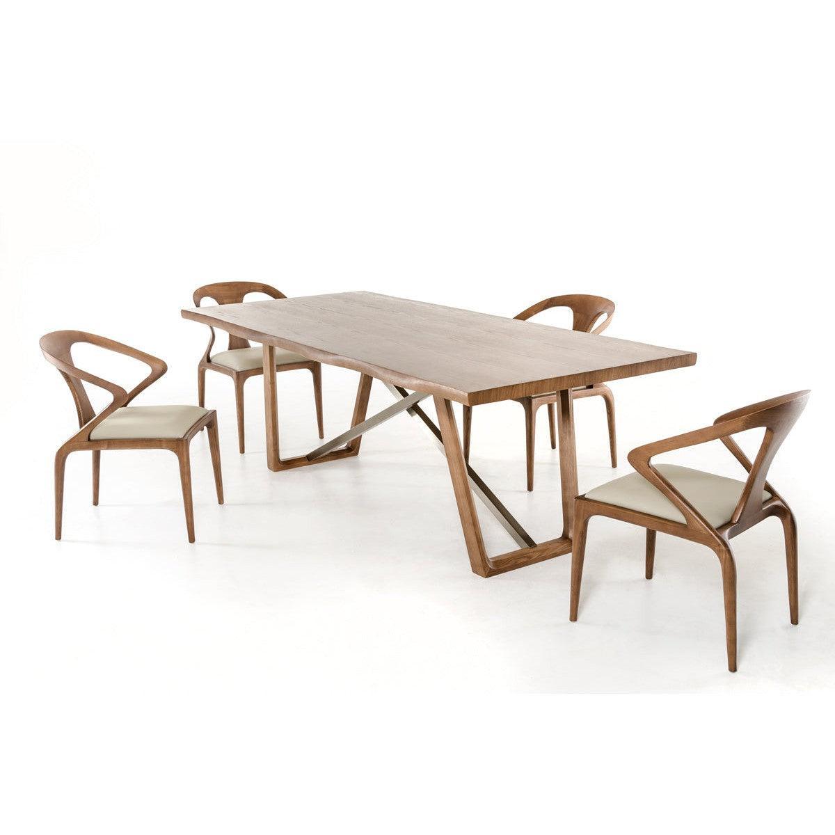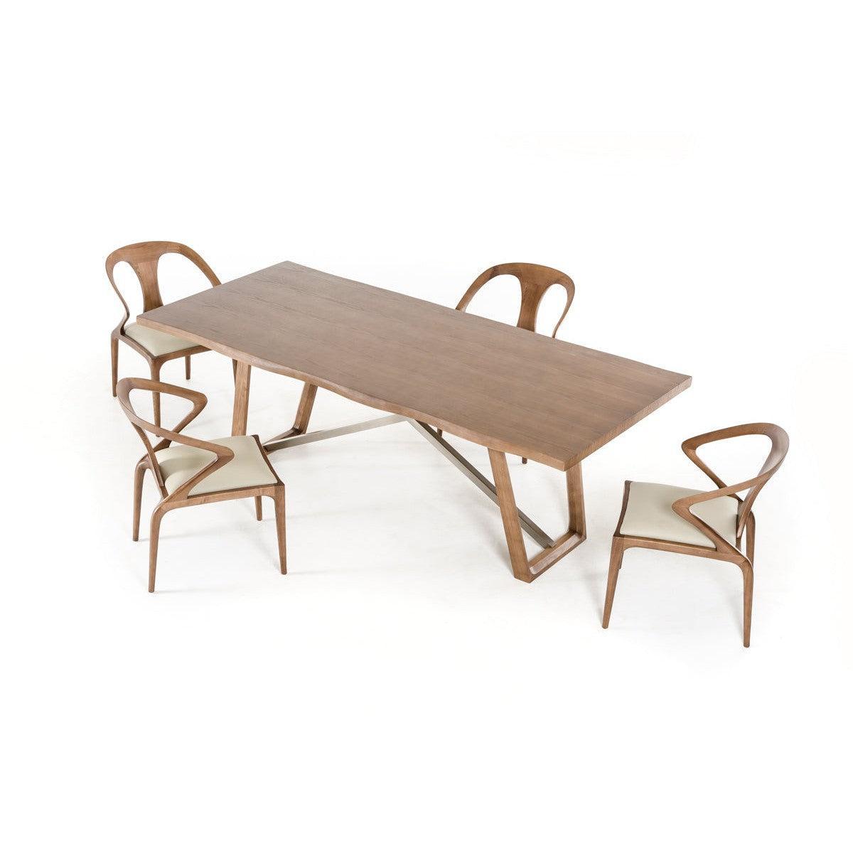 Upgrade your dining room by giving it a touch of class with this lovely dining table. It has a fashionable and sturdy design that will definitely diversify your interior and remove any hint of monotony. Not to mention how obviously well-made it is. This dining table is made from high-grade walnut veneer and metal. It's fantastic for making the place livelier. It's also highly practical besides just standing out with its looks. As for measurements, they are 39 for height, 87 for width, and 30 for depth, and it weighs 215.5 pounds. With this dining table, you'll get a warm and inviting piece for your living room or dining room.