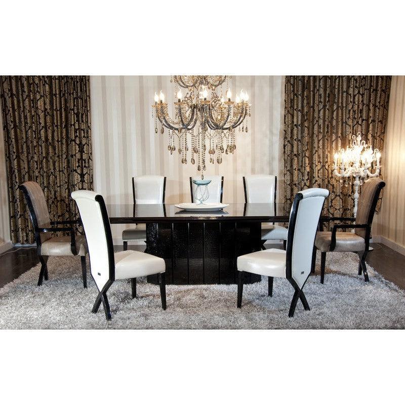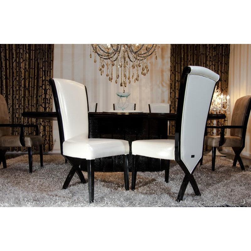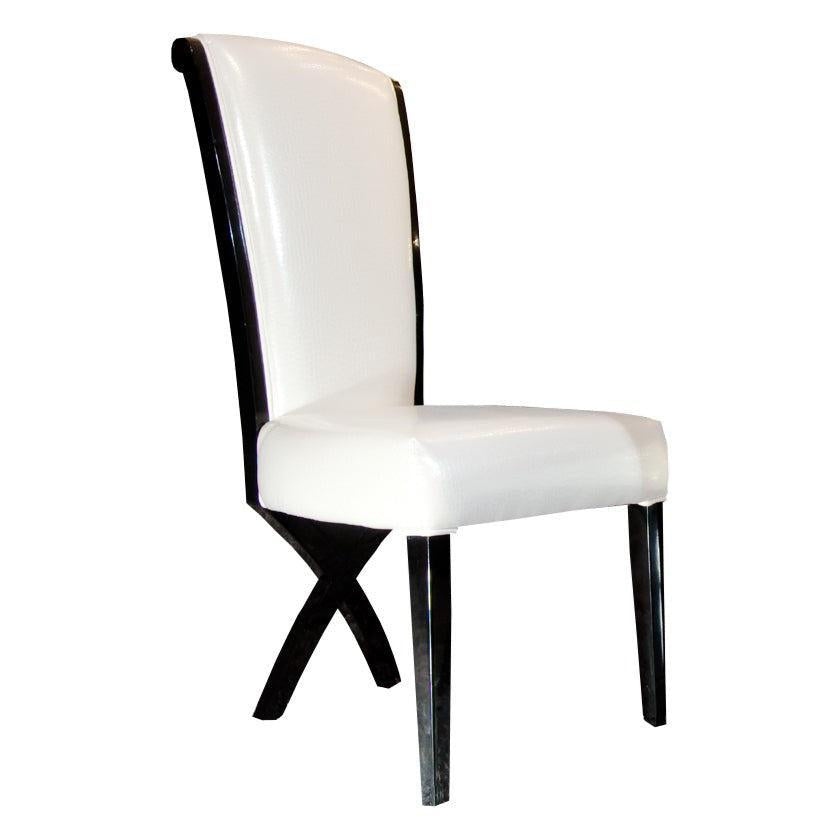 HomeRoots 43.5" White Leatherette And Black Wood Dining Chairs With X Shaped Rear Legs In Set Of Two