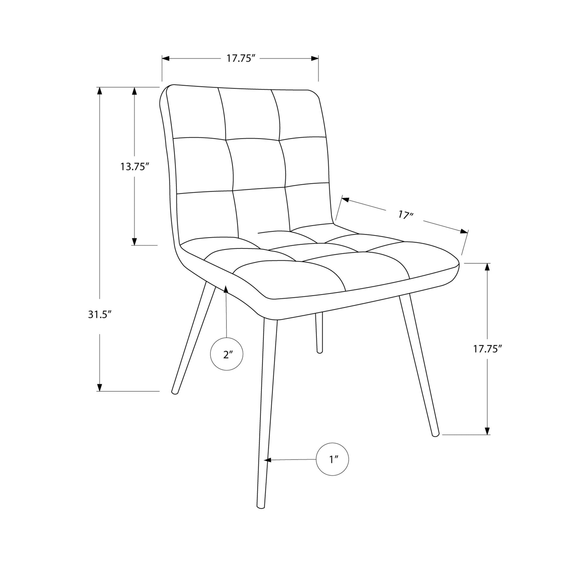 Enrich and beautify your dining room with this adorable dining chair. It's a high quality piece, proficiently crafted from foam, polyurethane, and metal. Its design will impress your friends and guests, and it's extremely comfortable to sit on as well. This dining chair both looks amazing, it's also highly functional. It has a lovely leather look as well. As for measurements, they are 63' for height, 47' for width, and 37' for depth, and it weighs 27 pounds. If you want a dining chair that's stylish and good looking, but also sturdy and durable at the same time, this is the piece for you. This is a set of two.