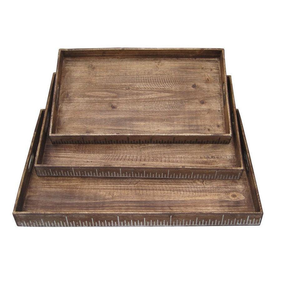Featuring simple but elegant construction, this set of distressed ruler trays is impressively versatile. A great collection piece in kids room, it can as well be fun having this tray set in classrooms. Apart from helping to get things organized in the room, the distressed ruler tray will also add style and scenic visuals to the room. Contains 3 pieces in a set Distressed ruler design Solidly constructed with wood Measures 19 X 12
