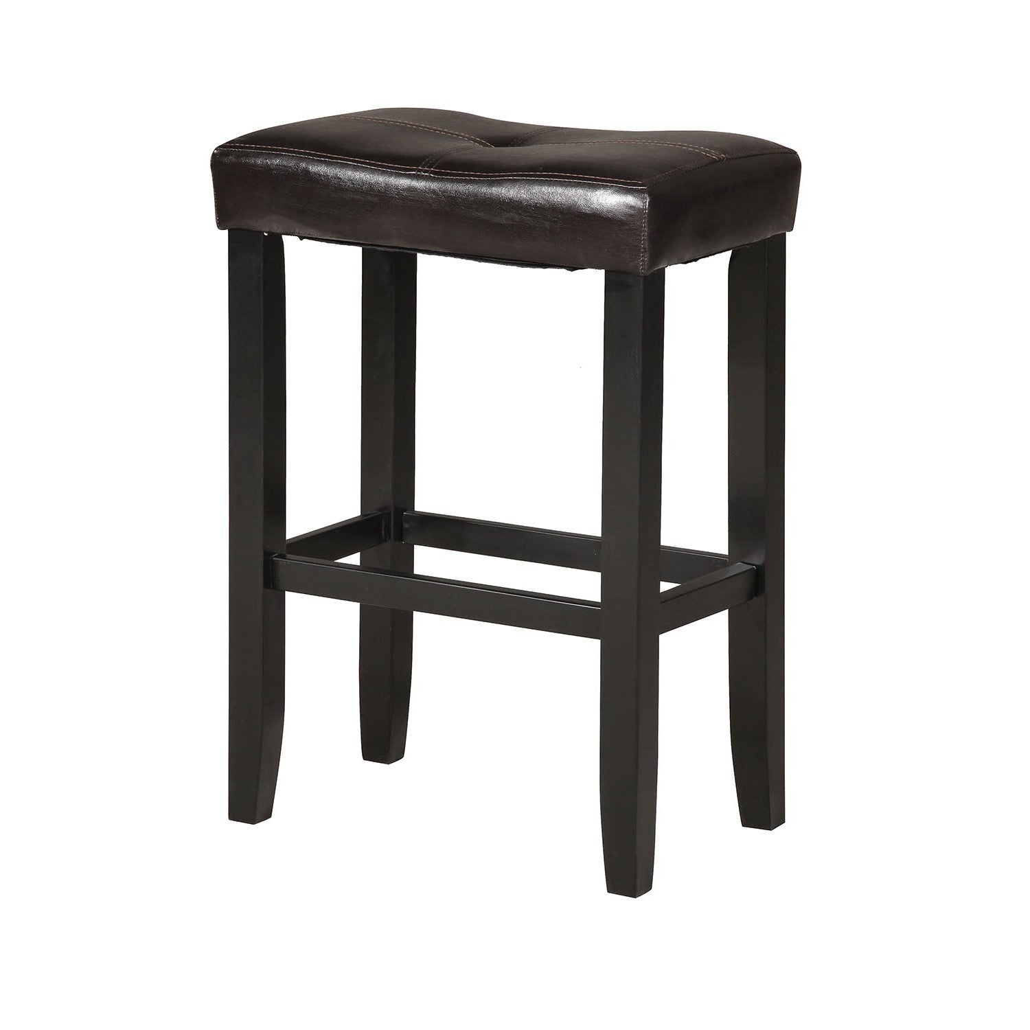 Creatively carved from selected veneers and hardwoods, our counter height stool has got all the functionality and transitional style to fit into your dining or bar stand. Featuring a faux leather seat cushion with a buttonless tufted design, this bar stool will offer comfortable seating as you and your guests are entertained in the dining area. To complete the sleek design, the stool is equipped with wooden straight-tapered legs and footrest supports in a black finish.