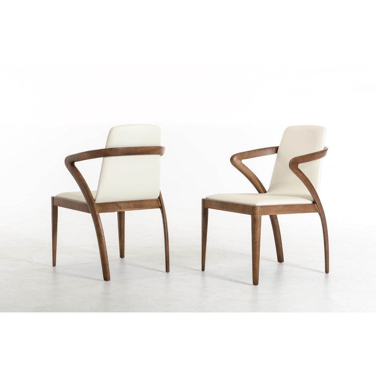 Enjoy your meal while seated on this Mod Walnut Wood and Cream Faux Dining Chair. Crafted of super soft cream color leatherette, it is the walnut finish wood body and arms make this chair so special and unique. Great as a dining chair or accent chair in the living room or bedroom, this chair is incredibly well made, sturdy, and will blend well with many colorations and decor styles. As for measurements, they are 32 for height, 20 for width, and 23 for depth, and it weighs 18 pounds. This dining chair can be a great addition to your home and will improve its ambiance immensely. If you want a functional, gorgeous, and durable dining chair, this is the one for you.