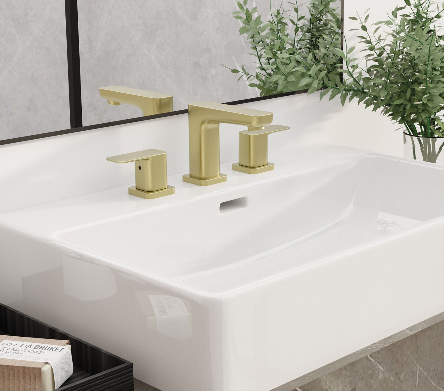 The Sevaun widespread lavatory faucet features a captivating design that is both sophisticated and contemporary, blending square and round edges for a look that complements a wide range of bathroom decor styles.