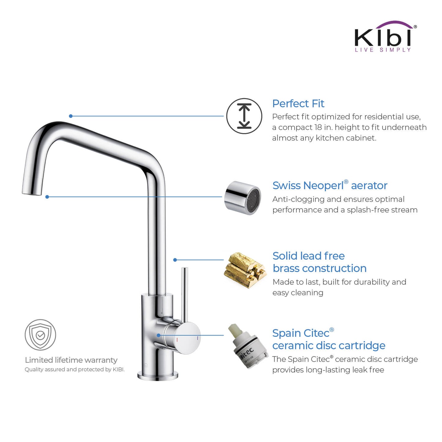 Finish Warranty: A 5-year warranty is provided on all Kibi faucet finishes to the original purchaser against manufacturing defects in materials and workmanship.