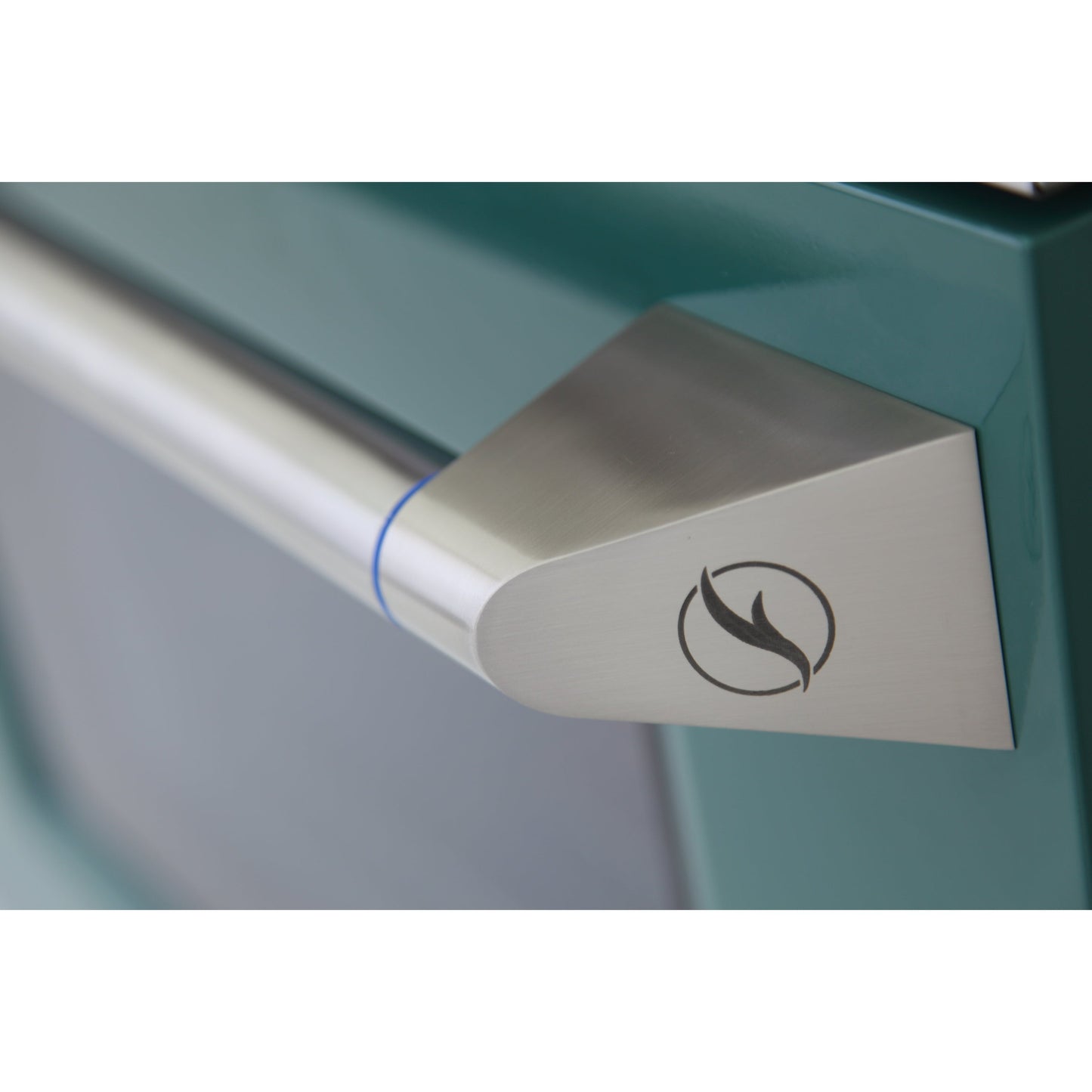 48” Pro Class Kitchen Dual Fuel Range. The main feature of this series is the ability to change the look of your kitchen in less than 2 minutes by changing the color of the oven door and the kickplate. You can get a new color set (oven door and kickplate) for a really low price and change it whenever you like. The currently available colors are Red, Blue, White, Green, Black, and Stainless Steel. 4th of July? Christmas? Your kitchen decor will be ready in 2 minutes!