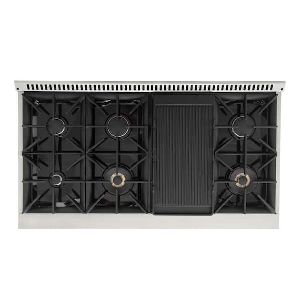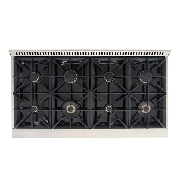 Kucht KDF Series 48" White Custom Freestanding Natural Gas Dual Fuel Range With 8 Burners, White Knobs and Rose Gold Handle