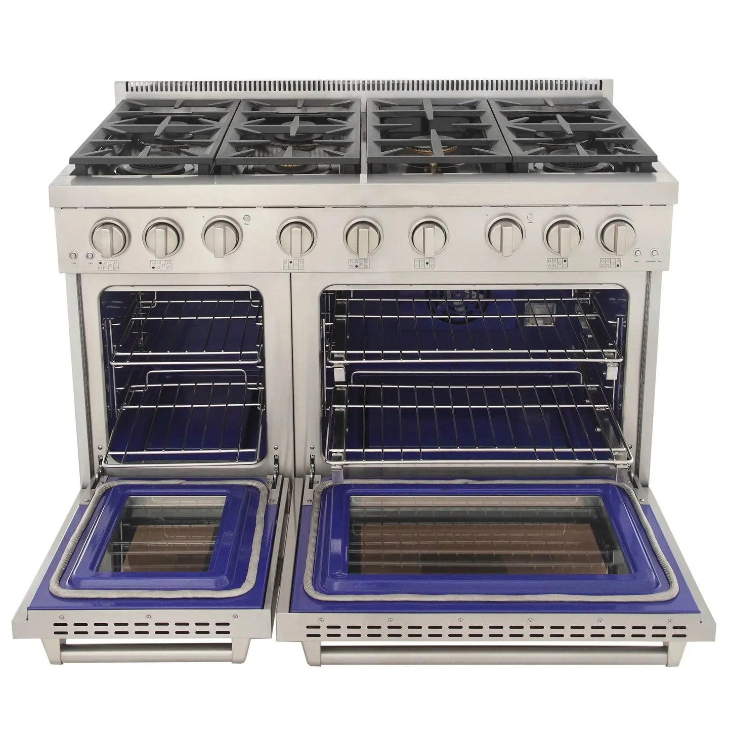 Kucht KFX Series 48" Freestanding Natural Gas Range With 7 Burners and Royal Blue Knobs
