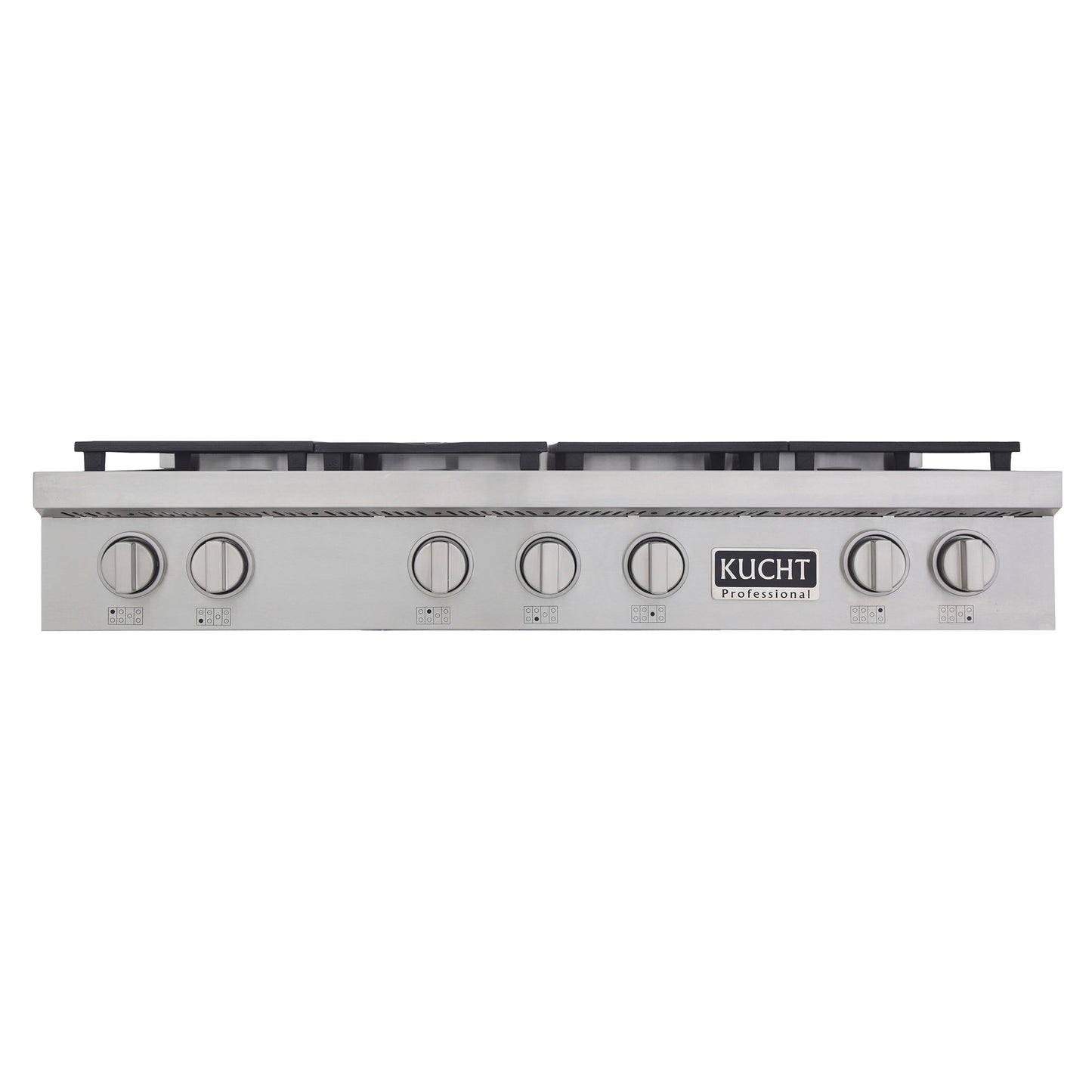 Kucht KFX Series 48" Natural Gas Range-Top With 7 Burners and Royal Blue Knobs