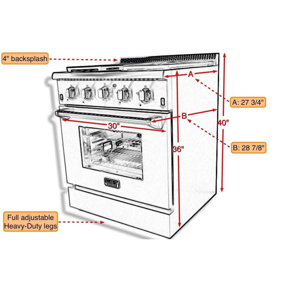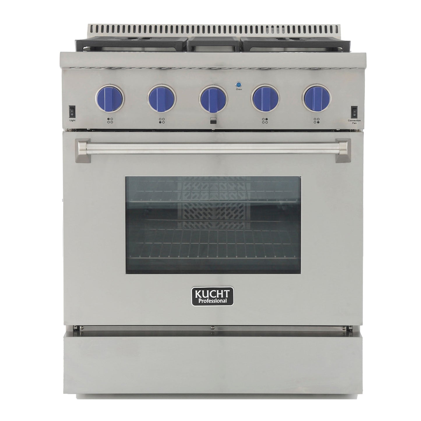 Kucht KRD Series 30" Freestanding Natural Gas Dual Fuel Range With 4 Burners and Royal Blue Knobs