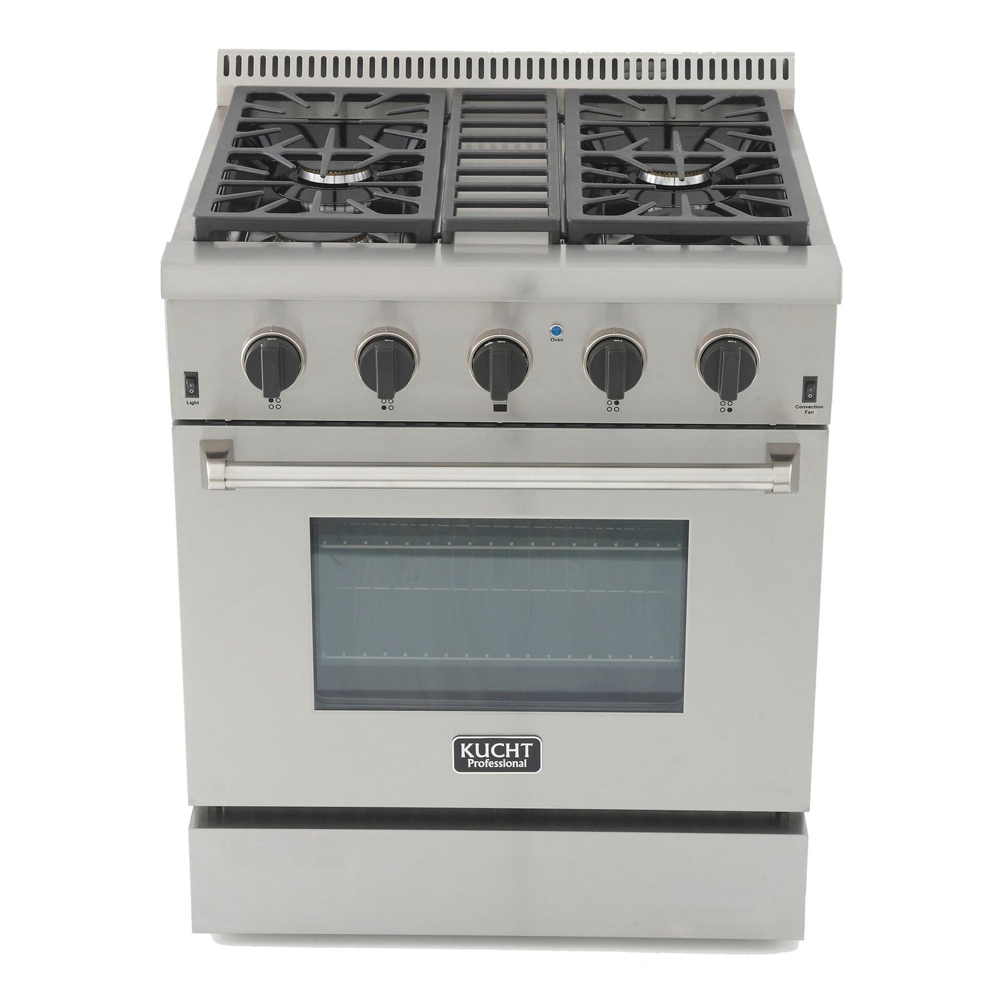 Kucht KRD Series 30" Freestanding Natural Gas Dual Fuel Range With 4 Burners and Tuxedo Black Knobs