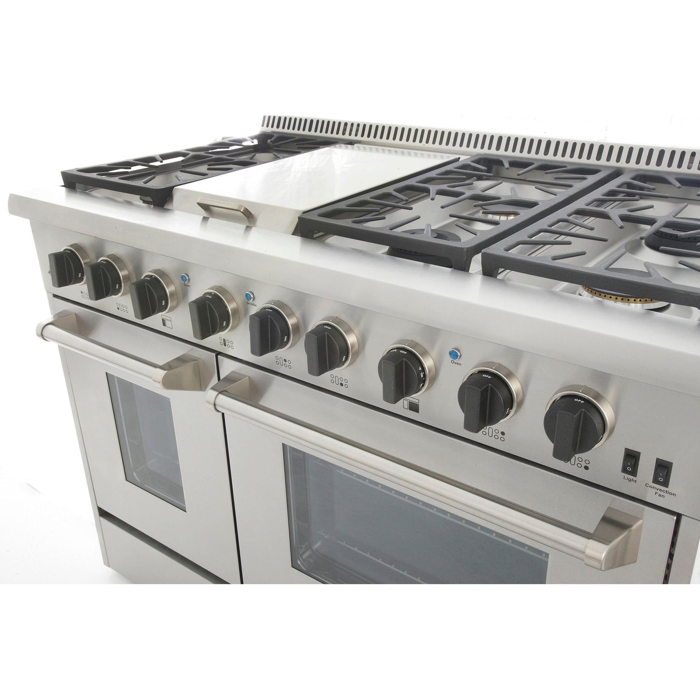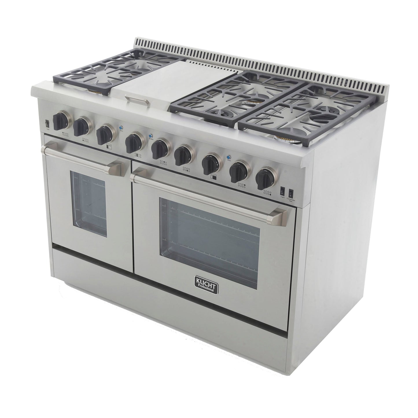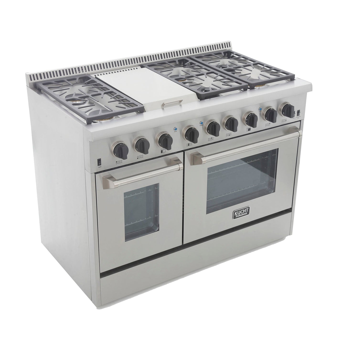 Kucht KRD Series 48" Freestanding Natural Gas Dual Fuel Range With 6 Burners, Griddle and Tuxedo Black Knobs