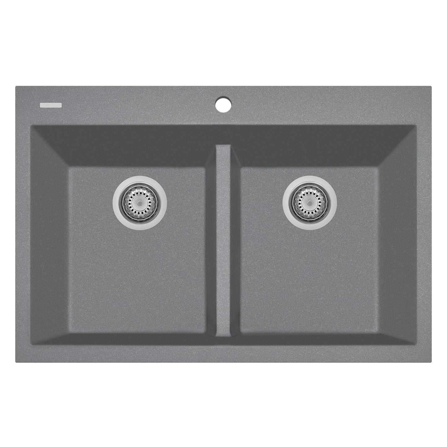 LaToscana Plados 33" x 22" x 10'' Titanium Double Bowl Granite Drop-in Kitchen Sink for 36'' Cabinet