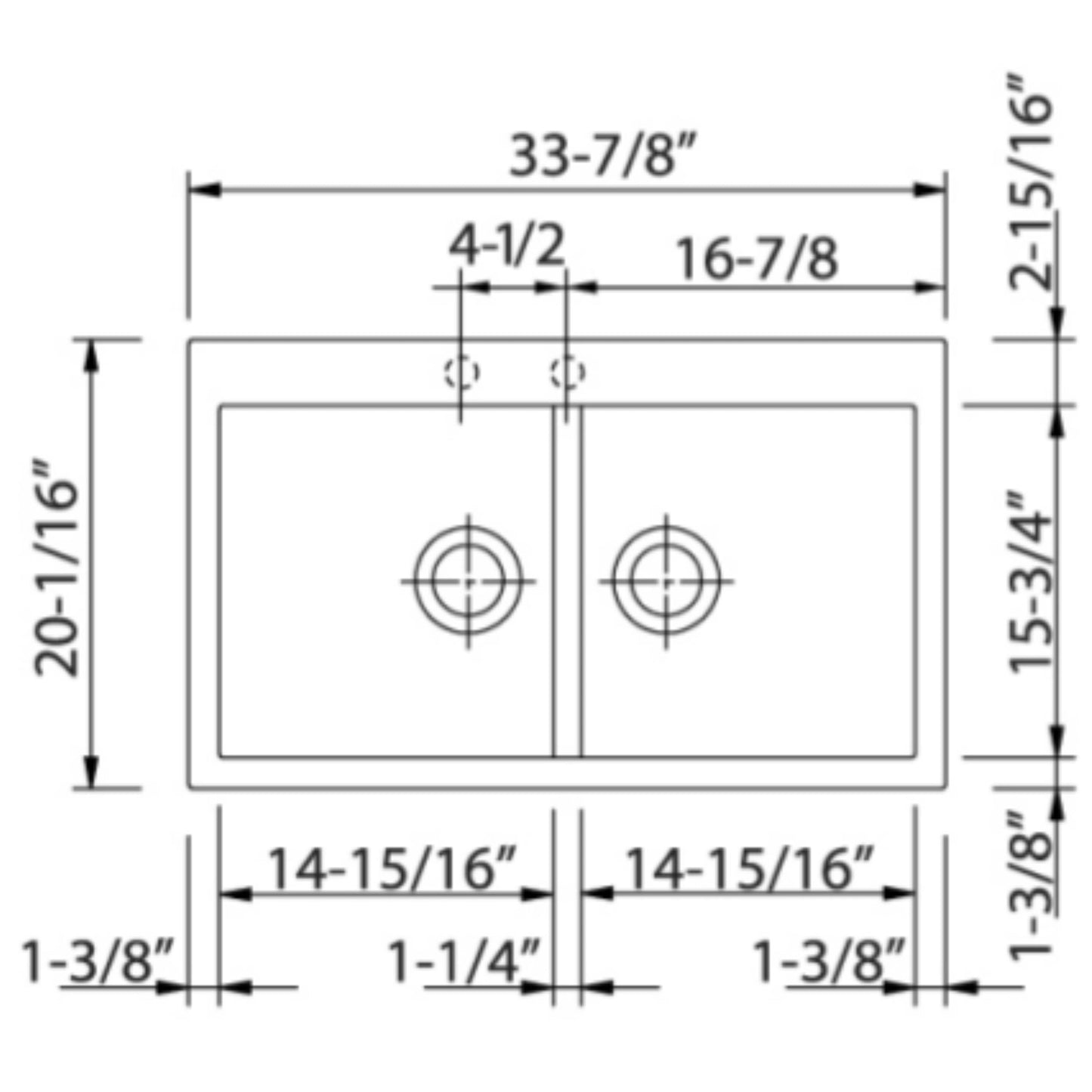 - 34" x 17" x 8'' Double Basin Granite Undermount Sink