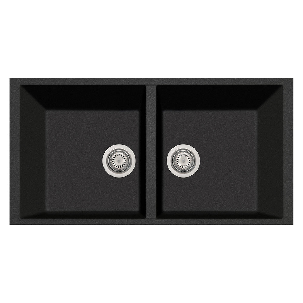 LaToscana Plados 34" x 17" x 8'' Black Metallic Double Bowl Granite Undermount Kitchen Sink