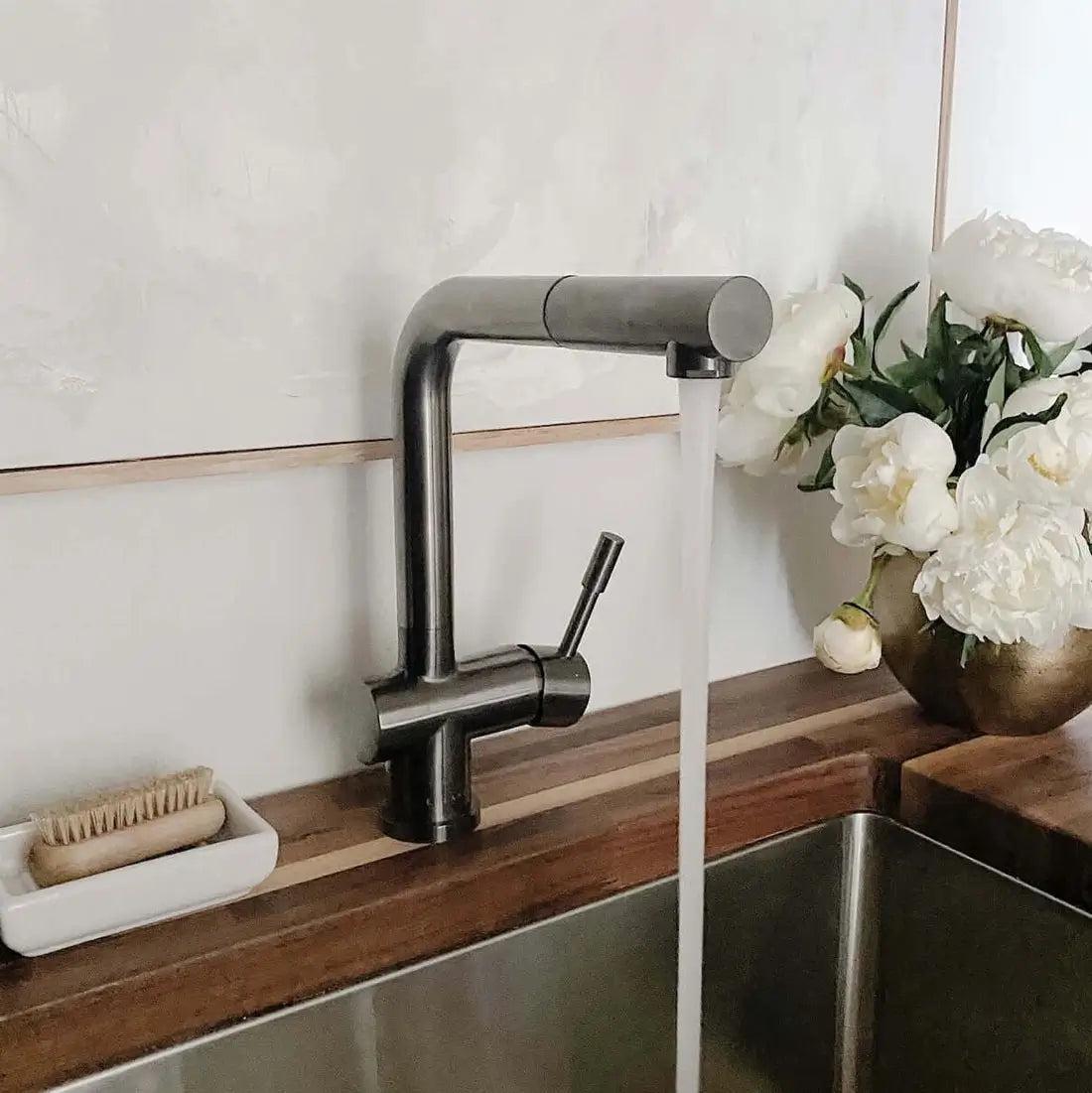 It will match whatever your style or preference is. Whether you want a gold kitchen faucet for a luxurious vibe, a black faucet finish for a sleek, modern feel, or a sophisticated brushed stainless finish for a classic look, the KA-240-30 and KA-240-31 can help you pull it off.