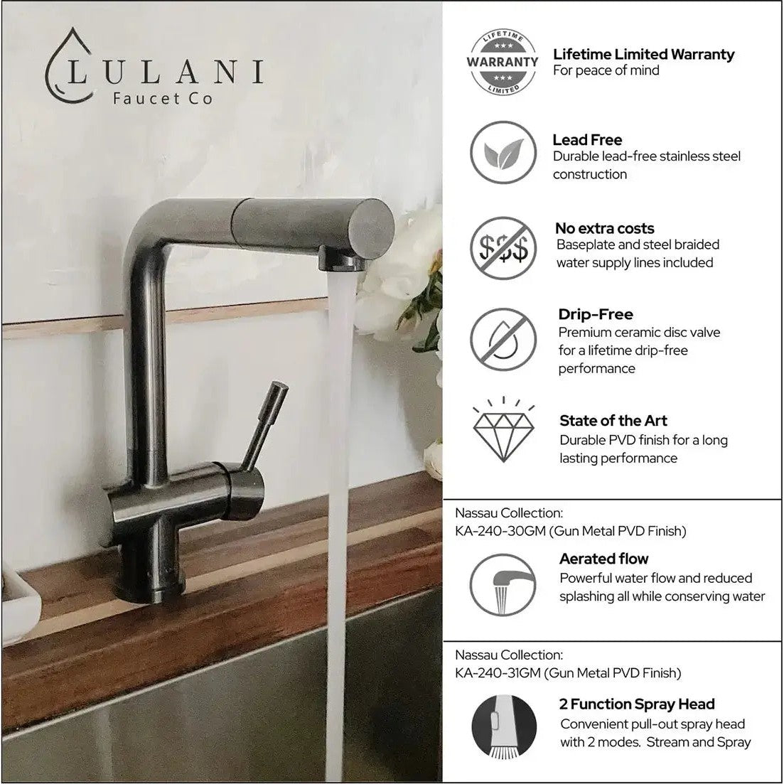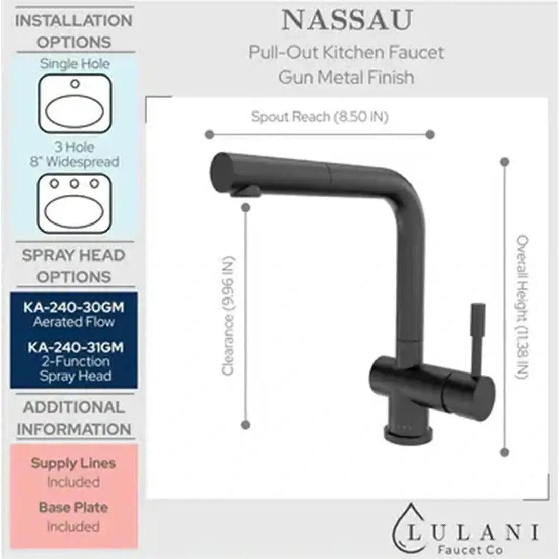 Lulani Nassau Gun Metal Stainless Steel PVD Finish 1.8 GPM 1-Handle Pull-Out Swivel Faucet With Baseplate