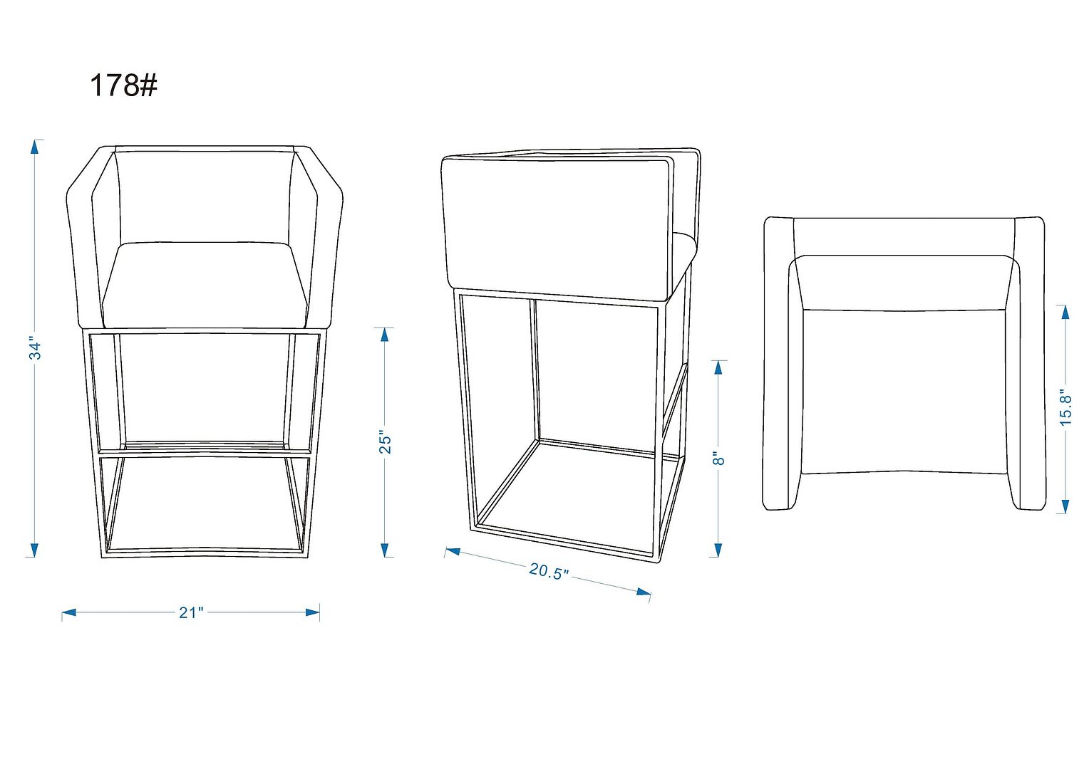 Manhattan Comfort Embassy 34"H Gray & Black Metal Counter Height Bar Stool