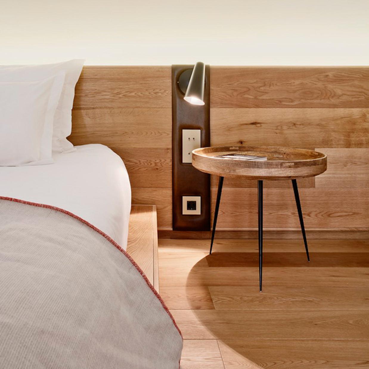 The Mater Bowl Table reconciles old Indian craftsmanship with the simplicity of Scandinavian design. The table top, made of sustainably sourced mango wood is turned on a lathe, showcasing the skill of Kharadi, an Indian wood-turning community, and supporting their local craftsmanship. The Bowl Table can stand alone or be paired as a side table vignette. The finish used on the tabletop is a lead-free, water-based PU lacquer. The legs are made of milled hollow steel rods and can be detached for ease of labor and transportation.