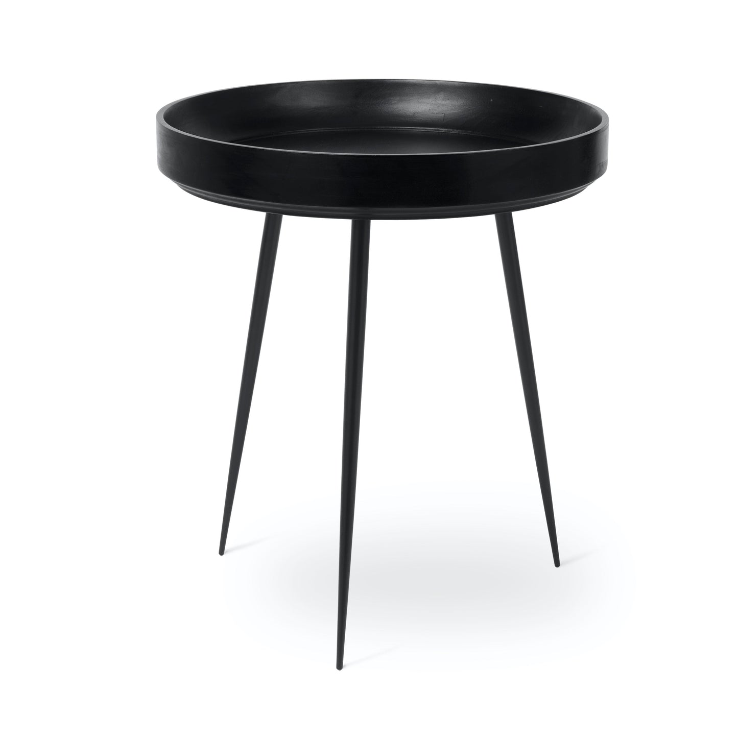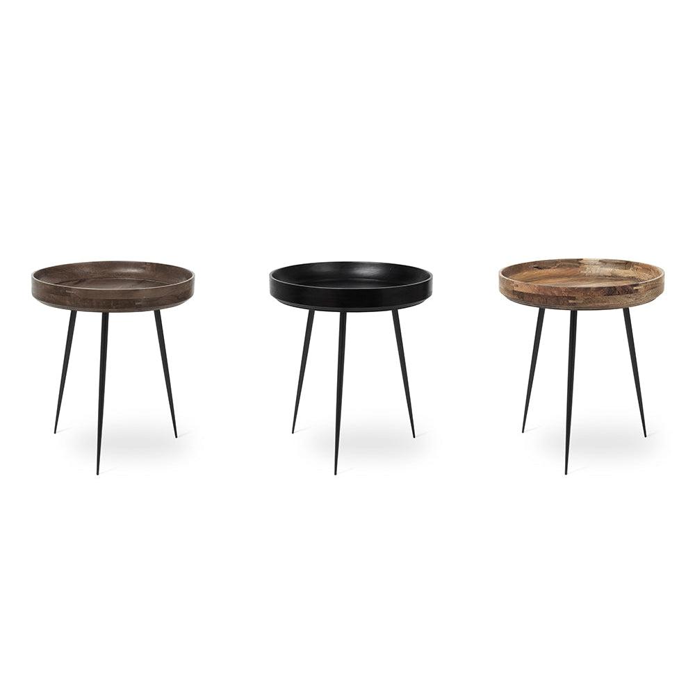 The Mater Bowl Table reconciles old Indian craftsmanship with the simplicity of Scandinavian design. The table top, made of sustainably sourced mango wood is turned on a lathe, showcasing the skill of Kharadi, an Indian wood-turning community, and supporting their local craftsmanship. The Bowl Table can stand alone or be paired as a side table vignette. The finish used on the tabletop is a lead-free, water-based PU lacquer. The legs are made of milled hollow steel rods and can be detached for ease of labor and transportation.