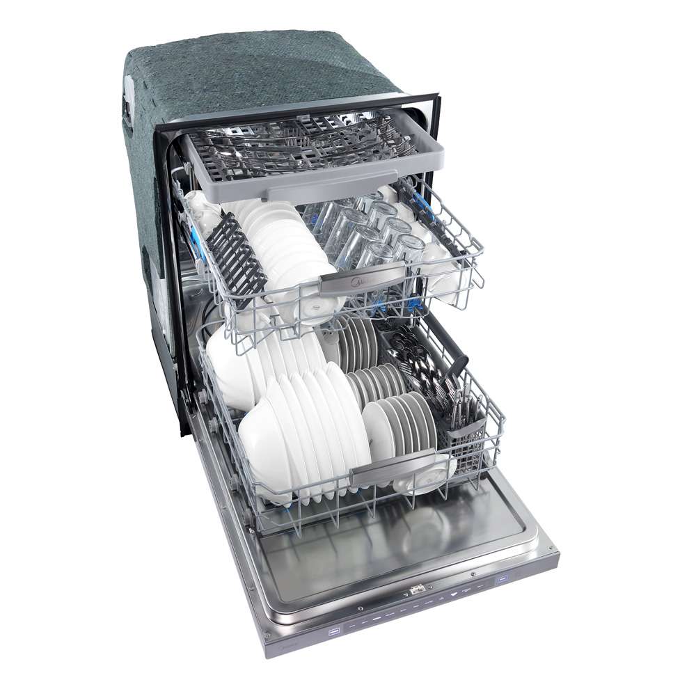 Superior cleaning technology combined with an Extended Dry feature ensures dishes come out spotless and completely dry. A hygienic Sanitize Cycle removes bacteria. Whisper-quiet 45 dBA performance keeps your home quiet, while a convenient third rack is perfect for cleaning knives and large utensils. Elegant, convenient LED interior lighting lets you see inside more easily.