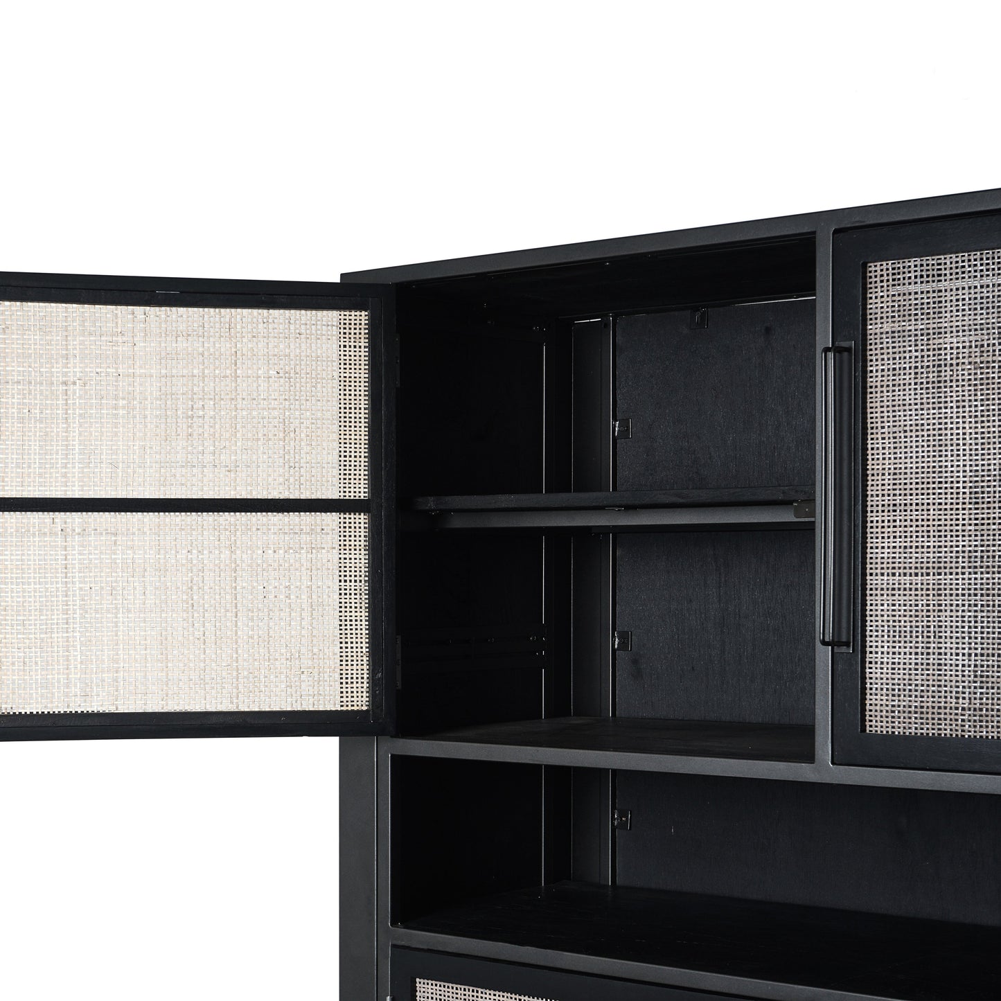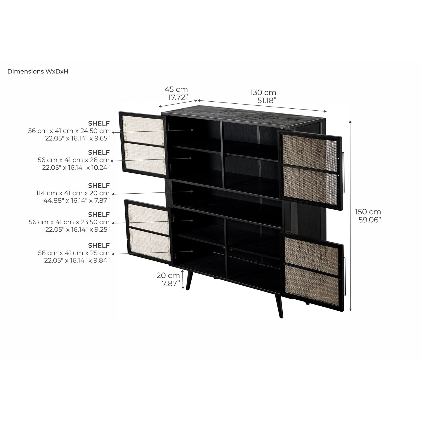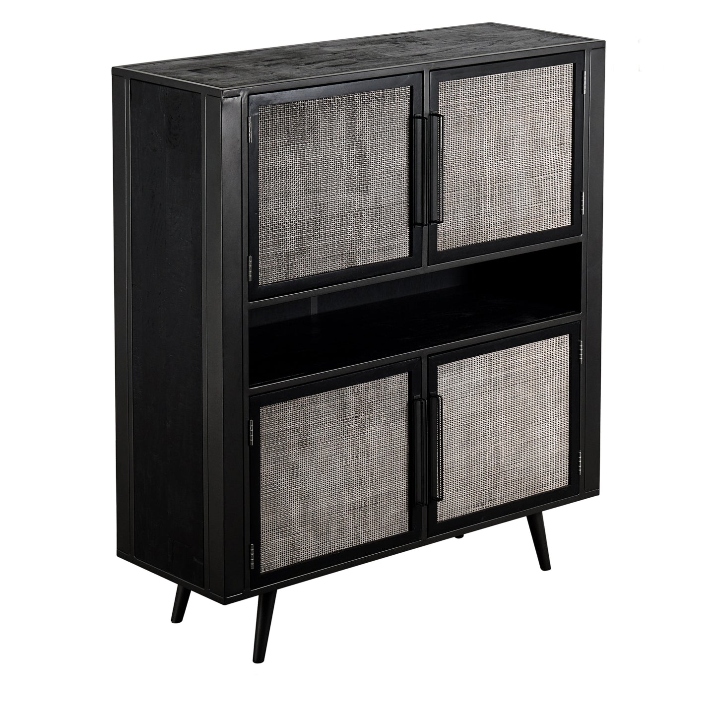 NovaSolo Nordic Mindi Rattan 51" Black Buffet With 4 Doors