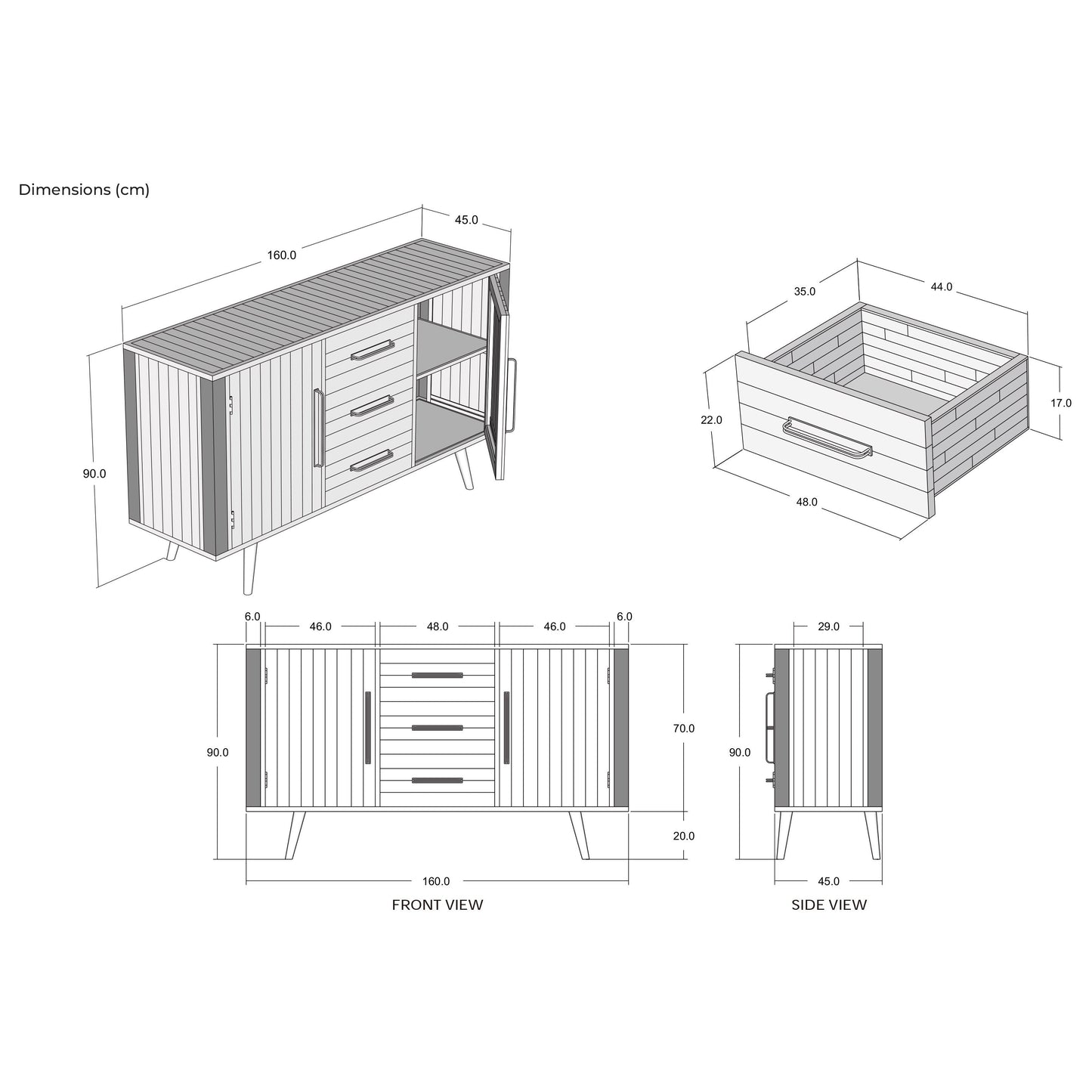 Inspired by our Scandinavian roots, the Nordic Rattan Collection is born from the ocean. The strongest ships that could weather rough seas, used the simple technique of connecting planks of timber, overlapped tightly and nailed together with precision. Using similar design elements, with recycled boat wood and an iron steel frame, this collection brings a history within each handcrafted and one-of-a-kind piece. Nordic Rattan successfully fuses the sleek and minimalistic simplicity that Scandinavian furniture is most recognized for, with the textured pallet of renewed boat wood. Handwoven split rattan door fronts add a natural and unstructured look to each piece. Featuring TV stands and buffets, this range befits the dining area and living space.