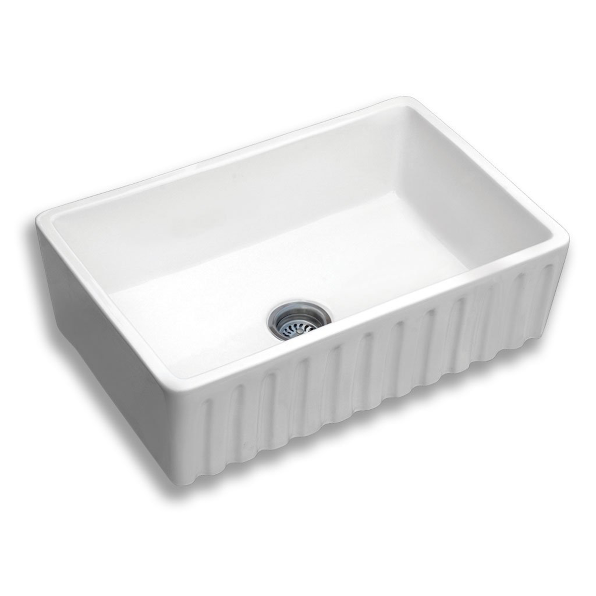 - PL-4050 White Porcelain Fluted Farmhouse Kitchen Sink