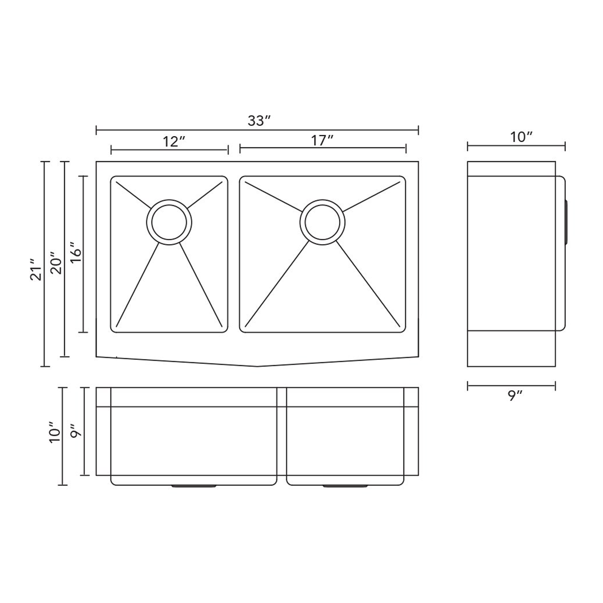 - PL-HA139 R15 Handmade 16 Gauge Stainless Steel Farmhouse Kitchen Sink with Micro Radius Corners