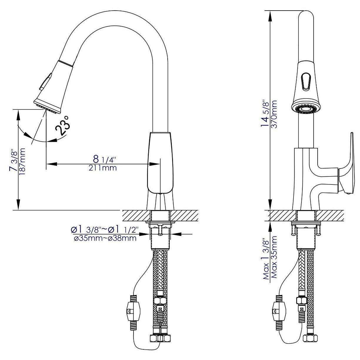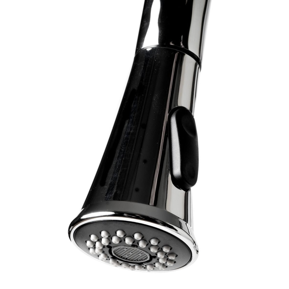 - Convinient pull down head with spray button allows you to reach any part of the sink and switch to spray mode whenever needed.
