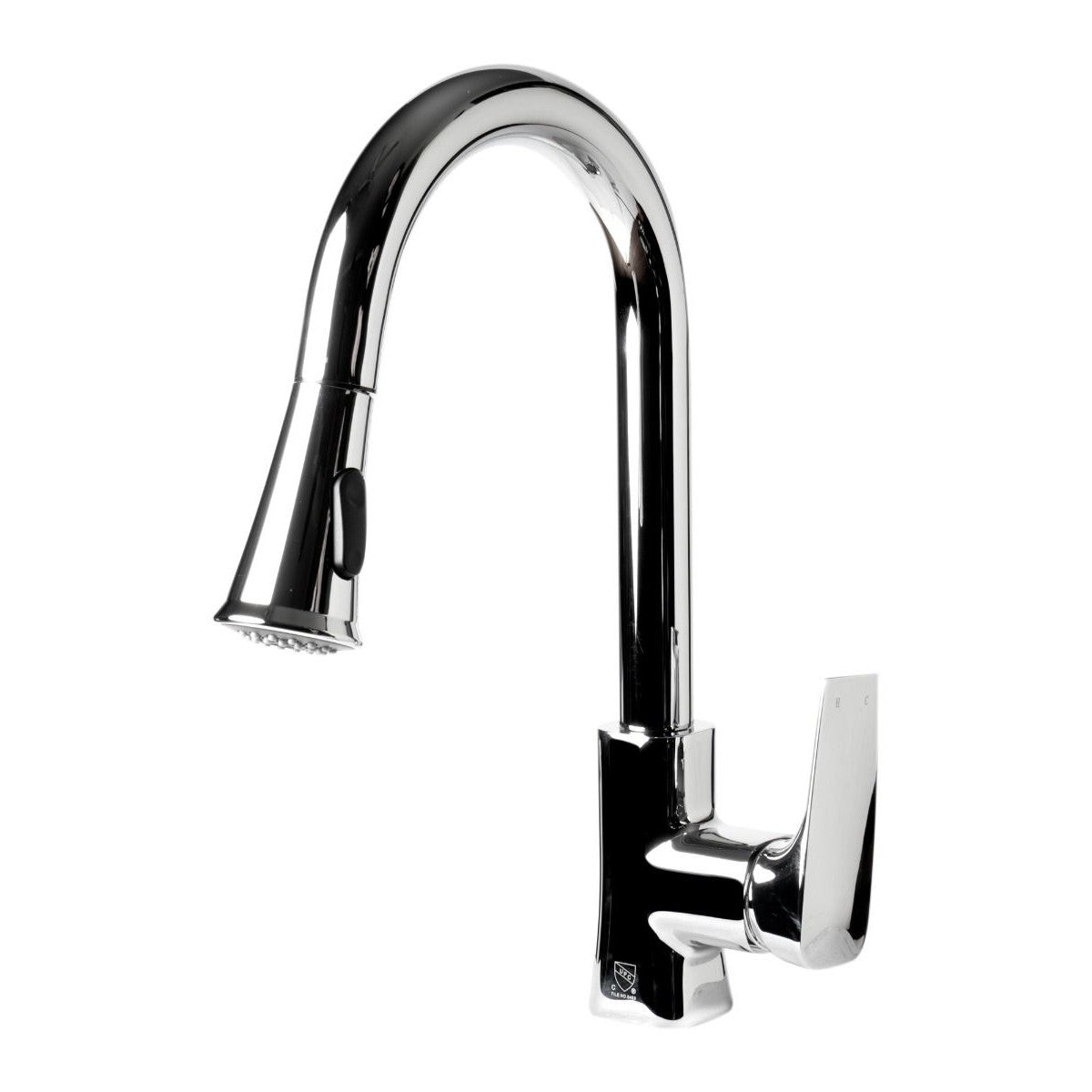 ALFI Brand ABKF3889-PC Polished Chrome Square Gooseneck Pull Down Kitchen Faucet