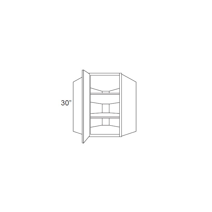 - Wall diagonal corner cabinet that takes up 24" from the corner out, on each wall.