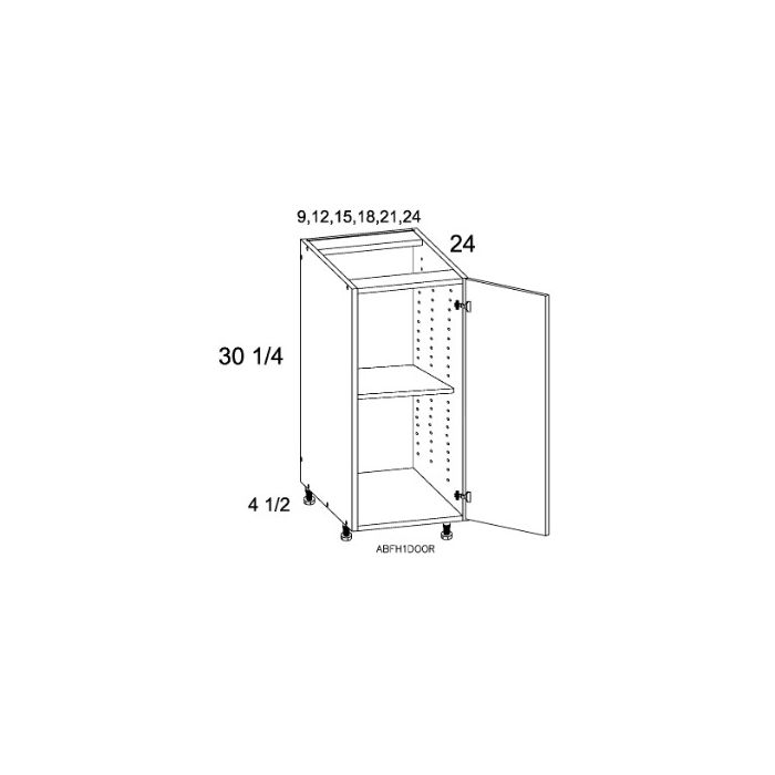 - 1 door base cabinet with 1 full height door and 1 adjustable shelf.