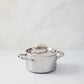 Best-in-class clad stainless steel is appreciated by chefs and home cooks for its fast and uniform heat distribution, and its practical, induction-suitable, and easy-to-clean stainless steel surface. In this Collection, it gets an Italian makeover: hammered by our master coppersmiths in true Ruffoni tradition, mirror polished, and further distinguished by signature handles with inlaid copper coins.