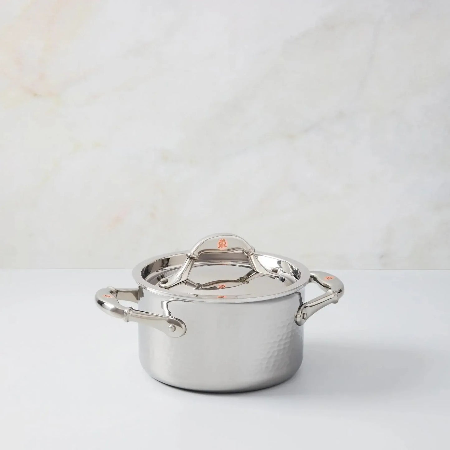 Ruffoni Symphoria Prima 99203 6" 2-Quart Hammered Clad Stainless Steel Saucepot With Riveted Stainless Steel Lid and Handle Inlaid With Signature Copper Coin