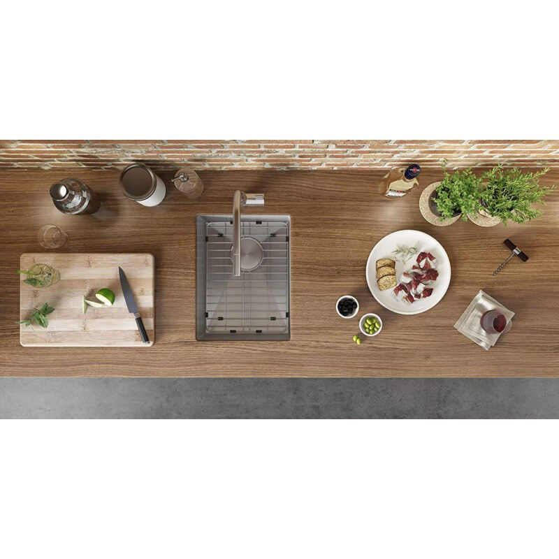 Gravena offers a modern, linear style with large rectangular bowls. The edgeX 10mm tight Radius inside corners of the bowls offer a slightly curved corner for easy cleaning while at the same time retaining the resolutely modern look. The rear drain placement ensures dishes don’t settle on the drain and prevent water flow while the drain grooves in the basin channel water towards the drain, keeping your sink clean and dry.