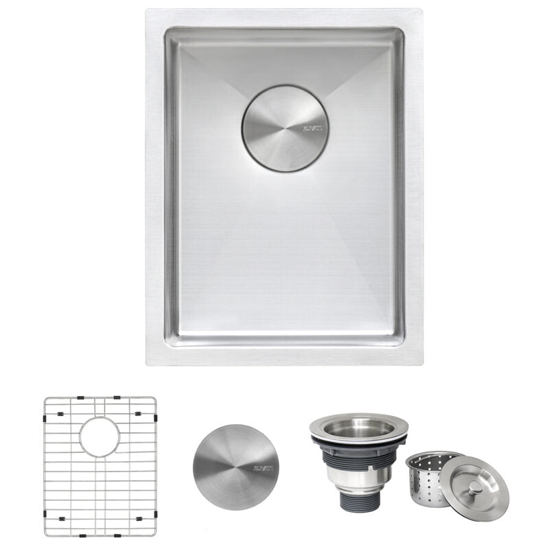 Ruvati Gravena 16” x 18" Undermount Stainless Steel Single Bowl Tight Radius Kitchen Sink With Basket Strainer, Bottom Rinse Grid and Drain Assembly