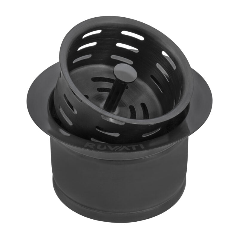 Ruvati Gunmetal Black Extended Garbage Disposal Flange with Deep Basket Strainer for Kitchen Sinks
