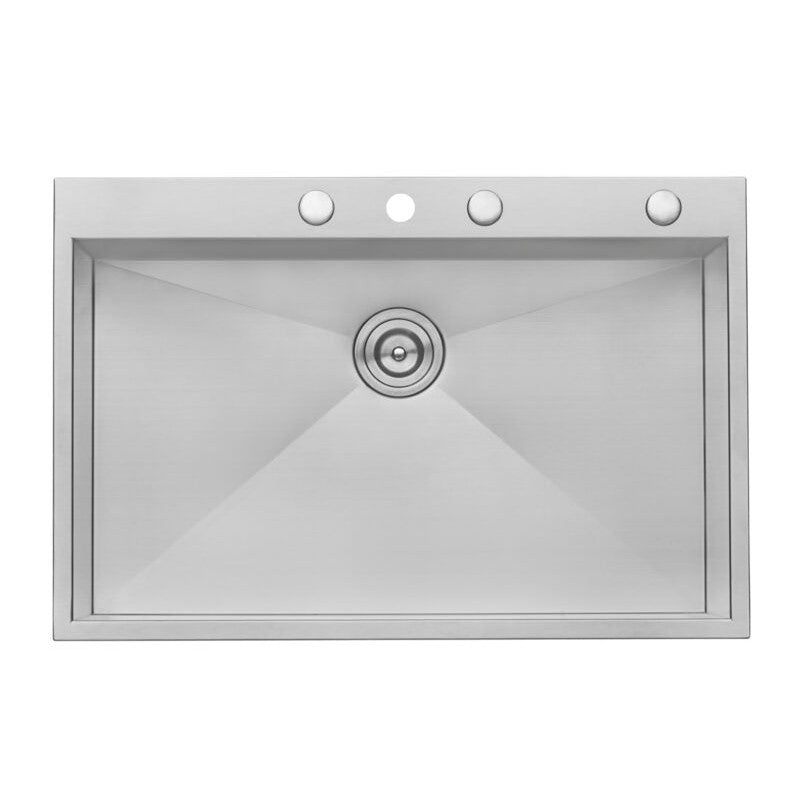 Ruvati Tirana 33” x 22" Drop-In Topmount Stainless Steel Single Bowl Kitchen Sink With 4 Faucet Holes, Basket Strainer, Bottom Rinse Grid and Drain Assembly