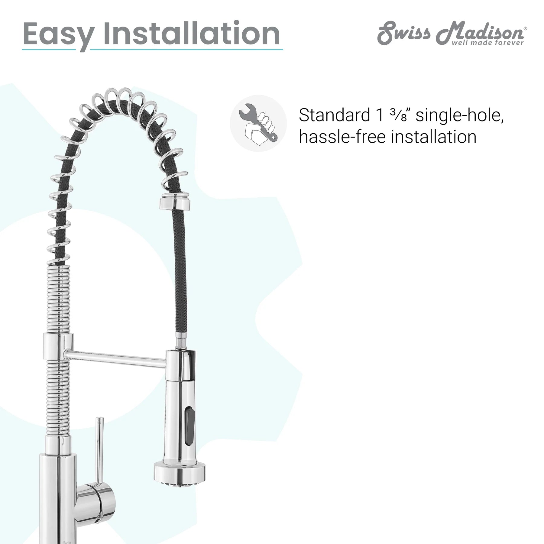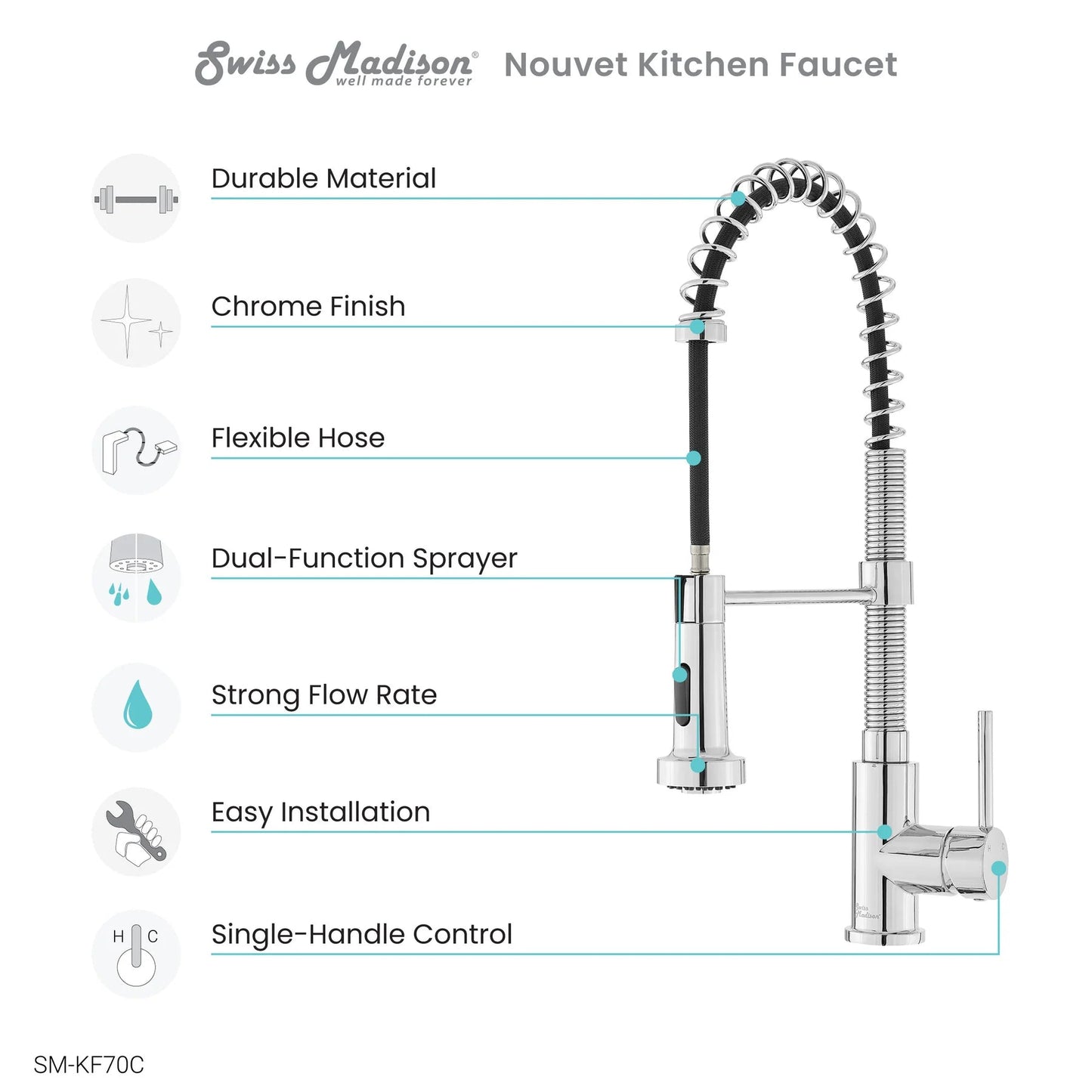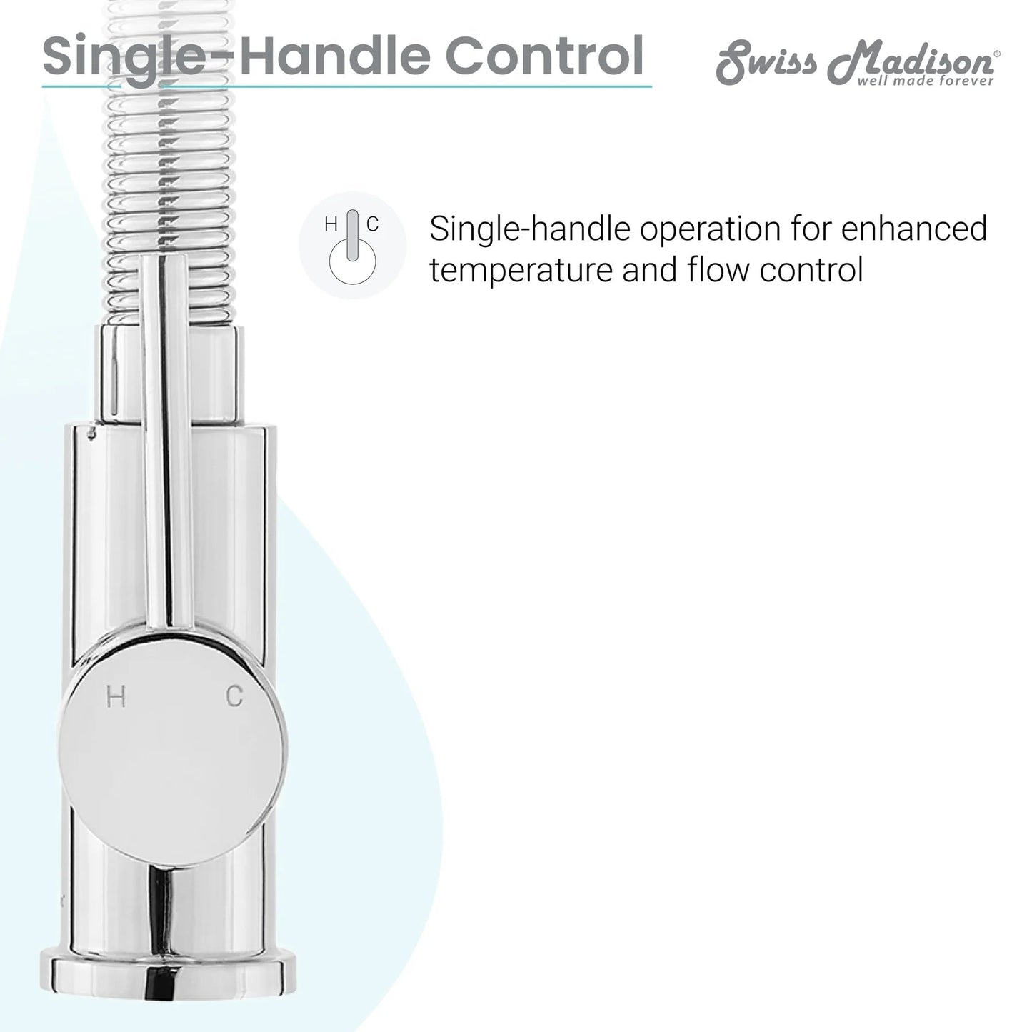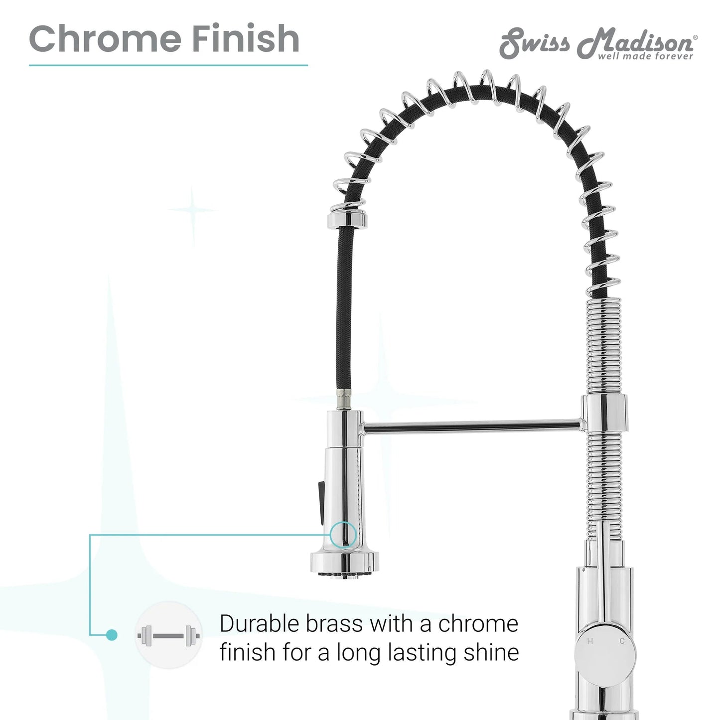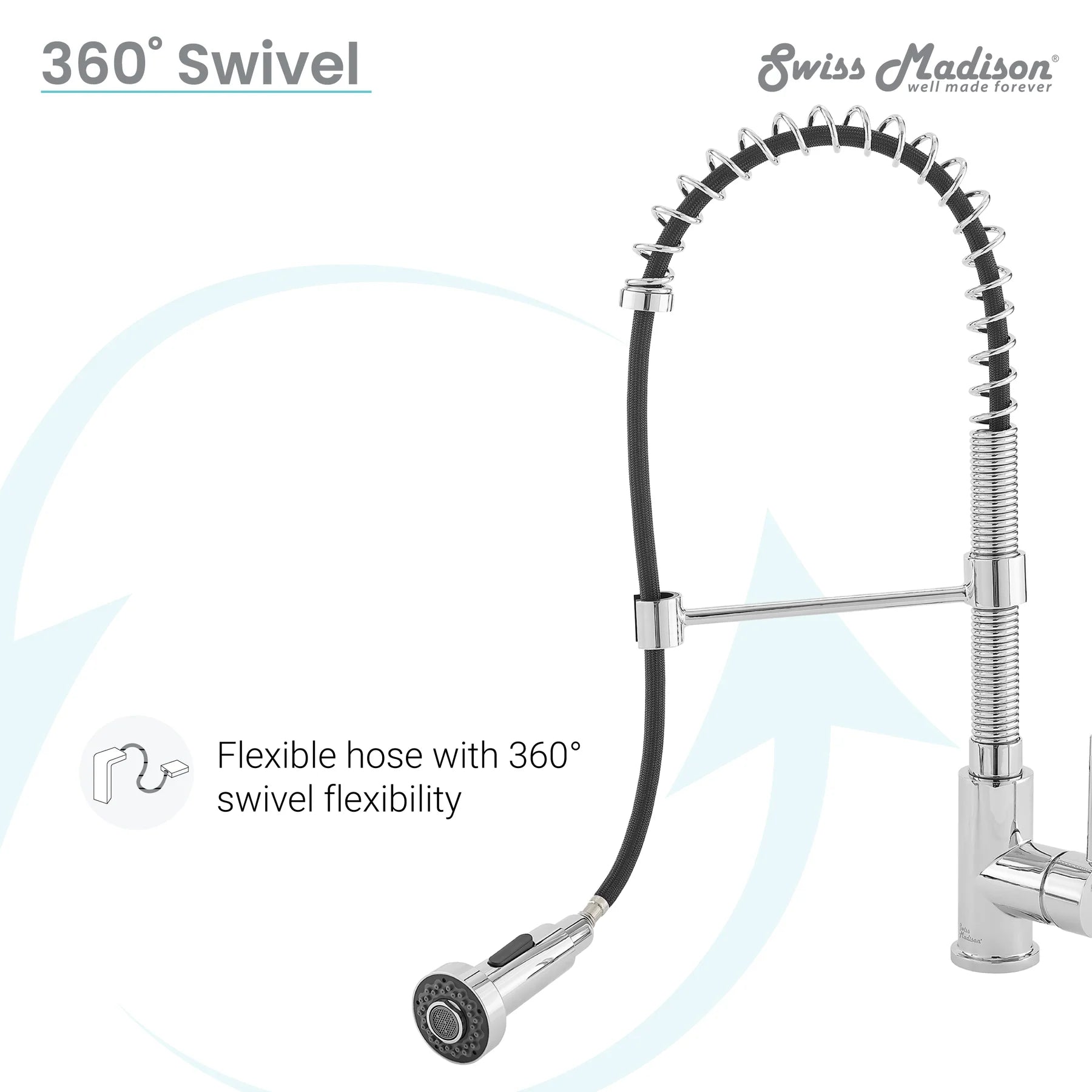 Swiss Madison Nouvet 19" Single Handle Chrome Kitchen Faucet With 360 Swivel and Pull-Out Spray