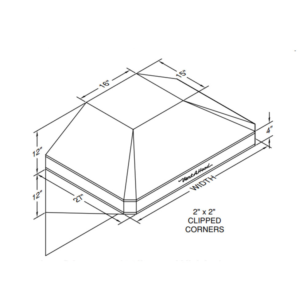 The Model "A" Series features chrome accents and sloped sides to enrich any "retro-styled" kitchen setting. The recommended mounting height is 33" above the cooking surface. Two side wing panels and a splash panel 30" tall x the width of the hood are included; the painted round duct and ceiling collar are sold separately. All Vent-A-Hood products are suitable for use in damp locations (outdoor applications such as a covered patio) when installed in a GFCI-protected branch circuit.