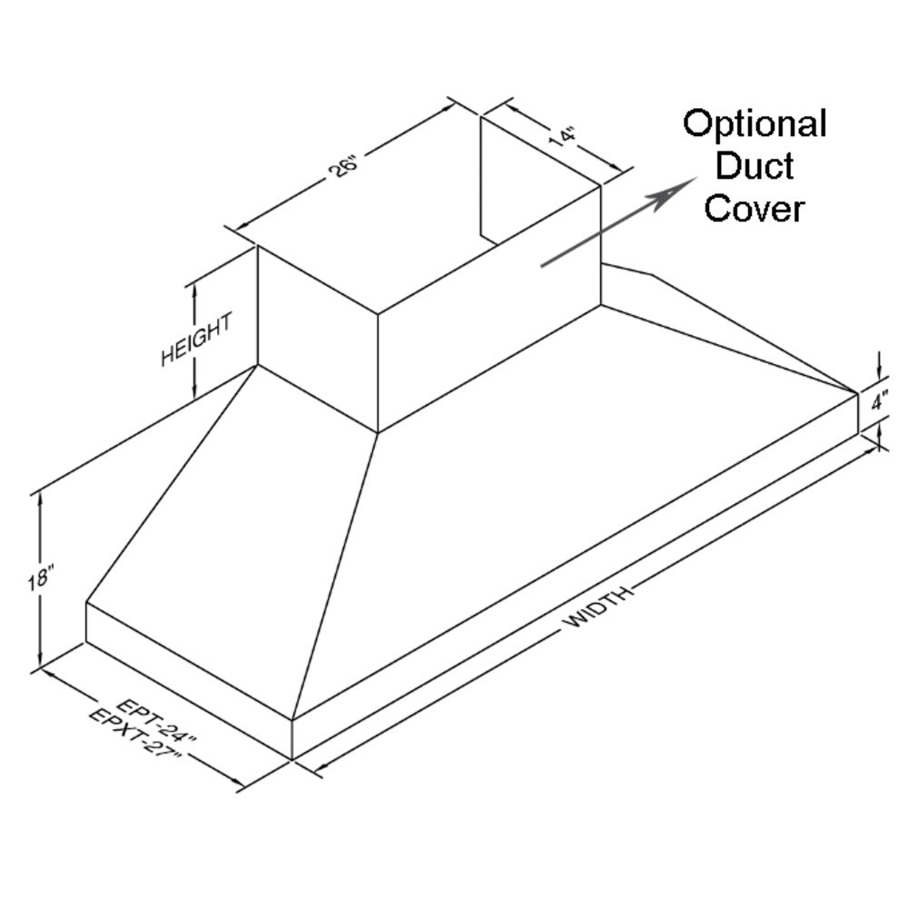 This Euroline Pro with squared lip is boldly designed to cover light residential, "commercial type" cooking equipment. The recommended mounting height is 30" from the cooking surface. All Vent-A-Hood products are suitable for use in damp locations (outdoor applications such as a covered patio) when installed in a GFCI-protected branch circuit.