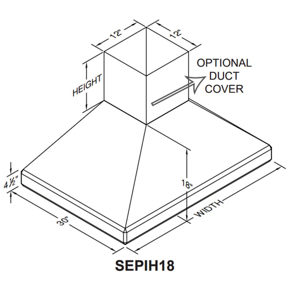 This Euroline Pro Series with Emerald Lip is boldly designed to cover light residential, "commercial type" cooking equipment. The recommended mounting height is 30" from the cooking surface. All Vent-A-Hood products are suitable for use in damp locations (outdoor applications such as a covered patio) when installed in a GFCI-protected branch circuit.