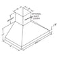 This Euroline Series with squared lip is a versatile European-style hood that can stand alone or be installed between cabinets. The recommended mounting height is 24" from the cooking surface. Shown with matching wall mount duct cover (sold separately), available in standard sizes for 7', 8', and 9' ceiling heights or in custom sizes. All Vent-A-Hood products are suitable for use in damp locations (outdoor applications such as a covered patio) when installed in a GFCI-protected branch circuit.