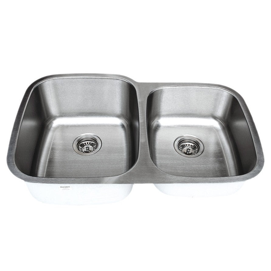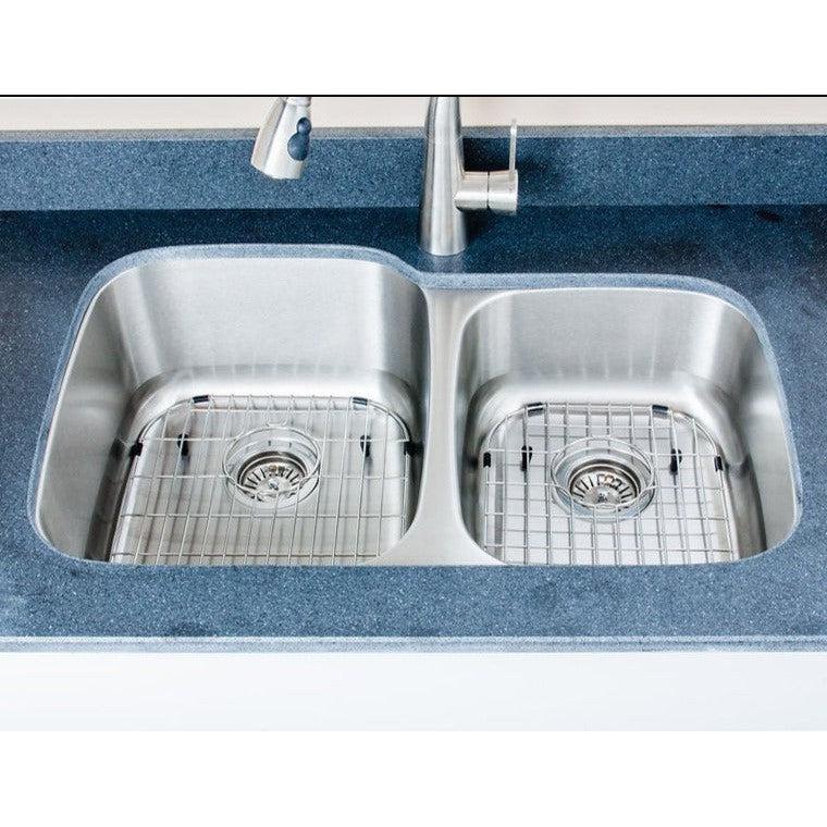 Wells Sinkware Craftsmen 32" Specialty Undermount 16-Gauge 60/40 Double Bowl Stainless Steel Kitchen Sink With 2 Bottom Protection Grid Racks and 2 Deep Basket Strainers