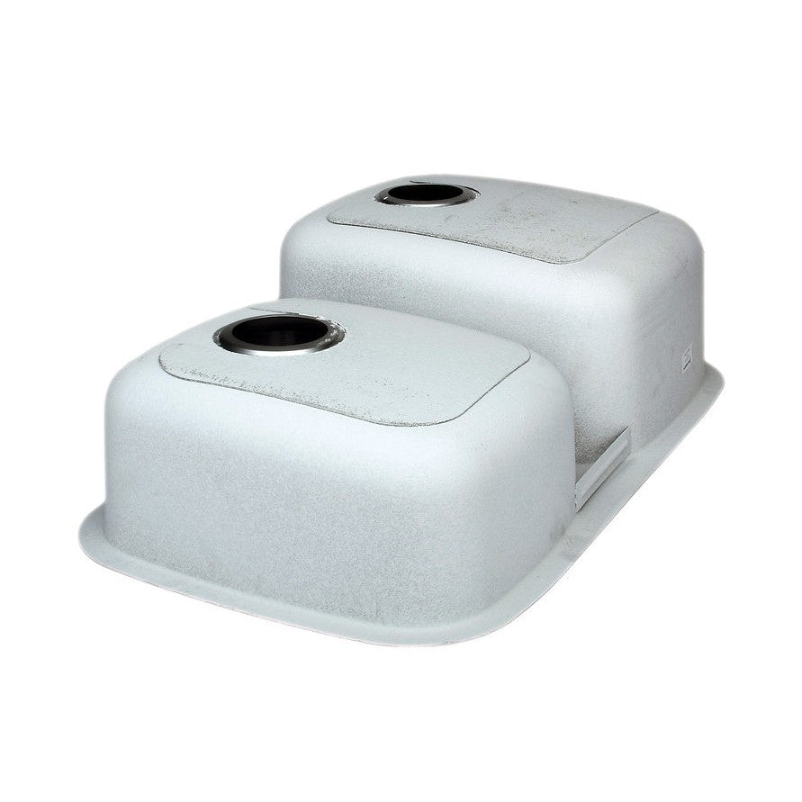 - Undermount double stainless steel bowls 9" and 7" deep configured in 60-40 ratio, with large bowl on the left