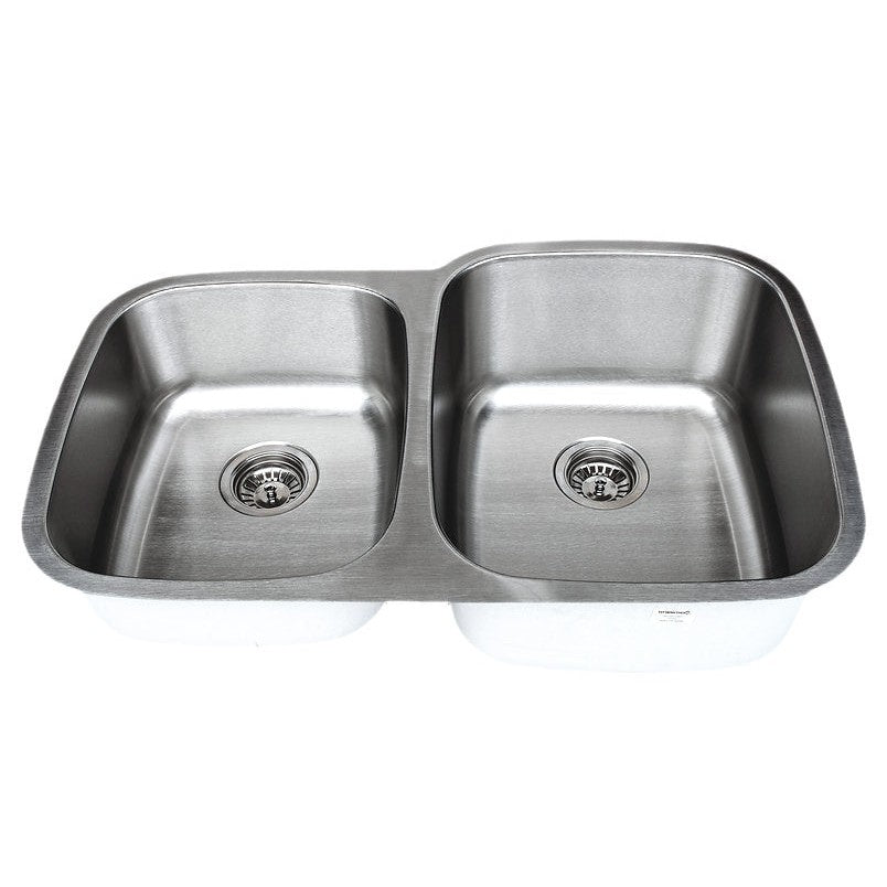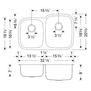 This uneven double-bowl kitchen sink is made of premium 18 gauge Type 304 stainless steel with uncompromised chrome-nickel composition. The two bowls are configured in a 40-60 ratio and are 7" and 9" in depth, respectively; its ideal combination of dynamics and usability makes it one of the popular designs on the market. The sink features a traditional brushed matte finish that allows normal wear and tear to blend into its subtle grains, effectively becoming scratch-resistant. A mirror-highlighted rim adds brightness and sophistication to the sink's minimalist appearance. Heavy-duty rubber pads and coating on the underside of each sink bowl muffle the noise of splashing water and absorb condensation due to changes in water temperature. Drain holes are placed toward the rear of the sink so that the under-counter plumbing takes less space and leaves more room for storage. Each Wells stainless steel sink comes with our limited lifetime warranty.