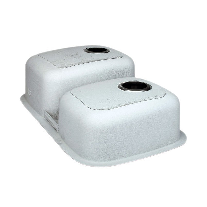 - Undermount double stainless steel bowls 7" and 9" deep configured in 40-60 ratio, with a large bowl on the right